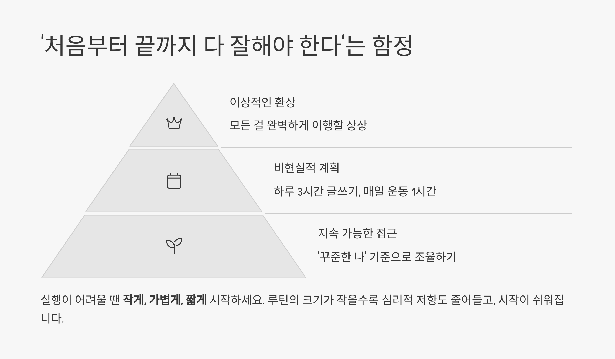 - 실행이 어려울 땐 ‘작게, 가볍게, 짧게’