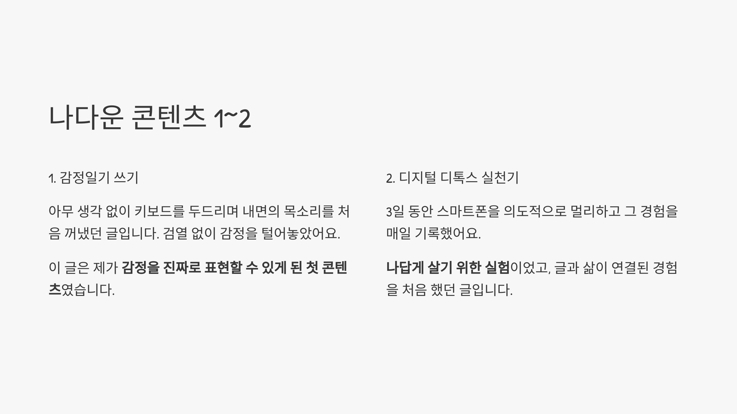 이 콘텐츠들이 가장 ‘나다운’ 글이었던 거예요.