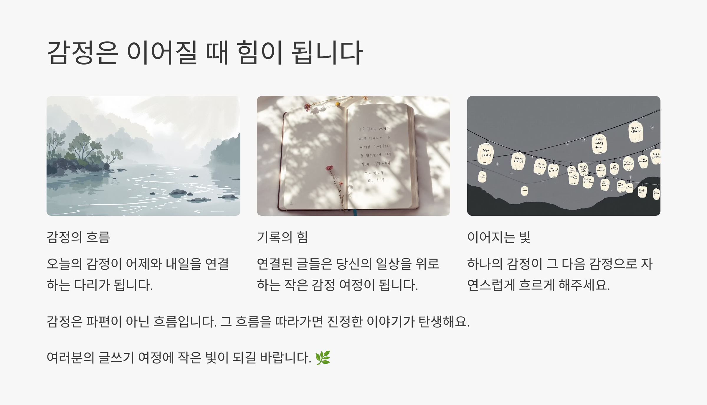 감정을 포장하지 않고, 흐름대로 남기기만 해도 충분합니다.
