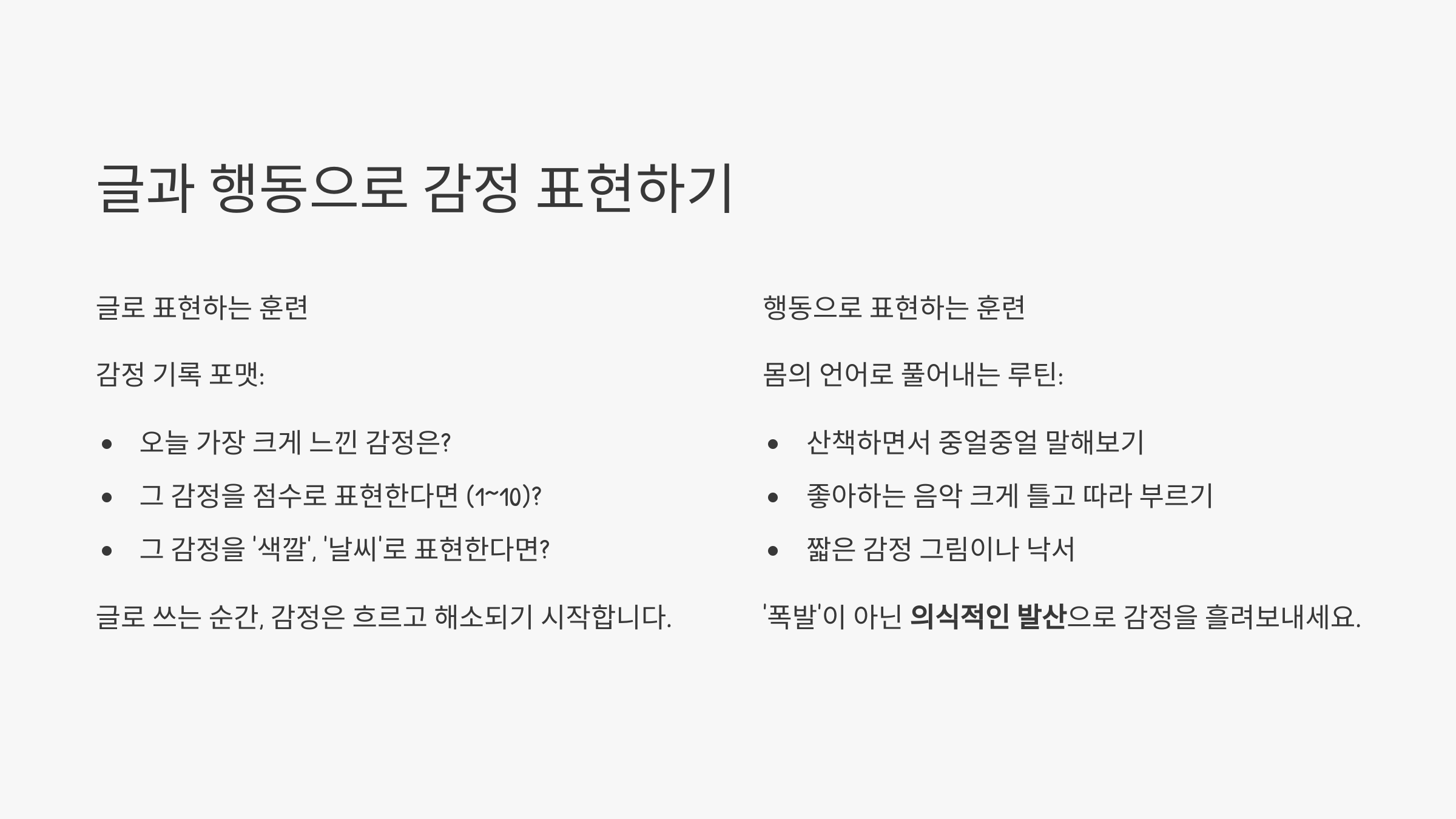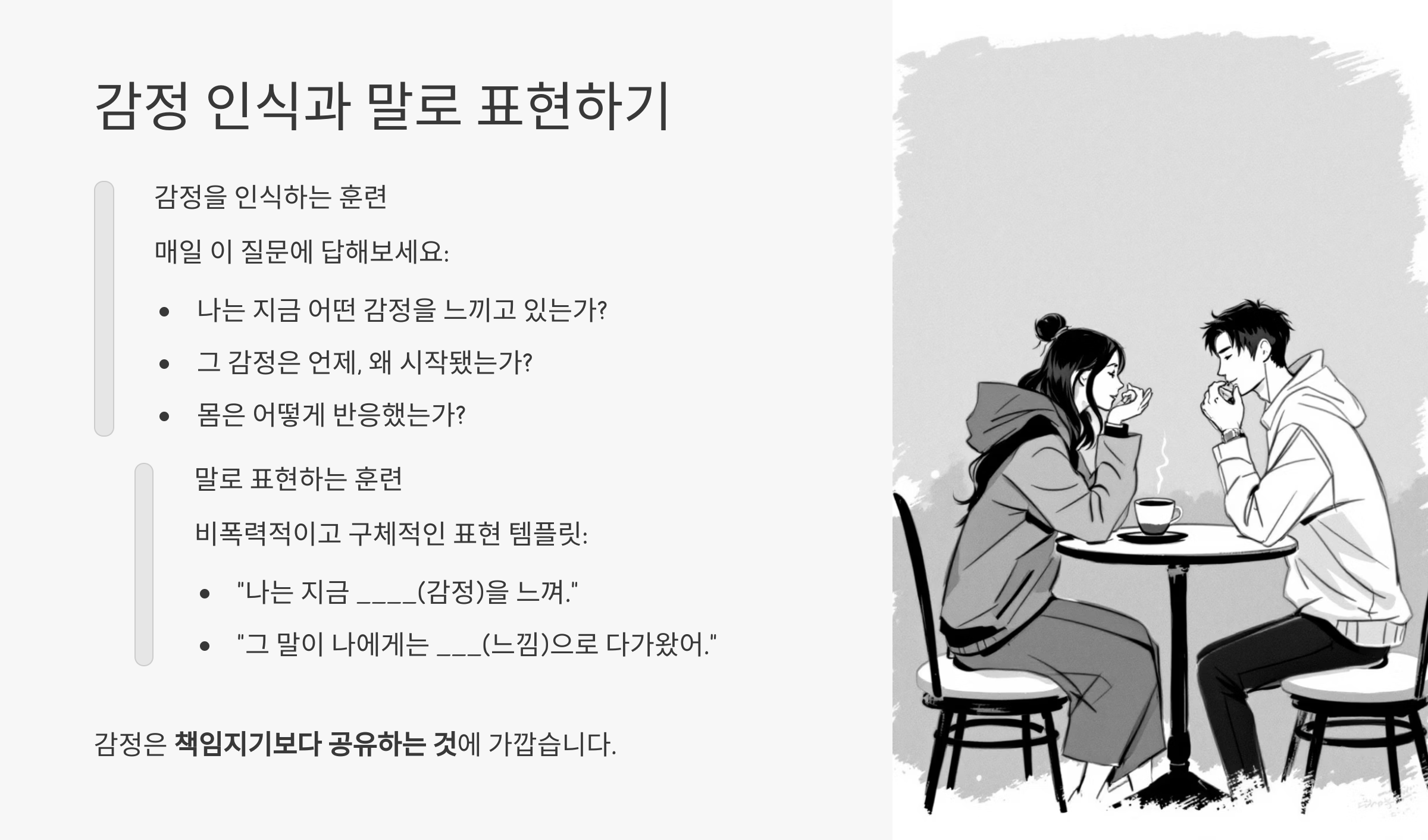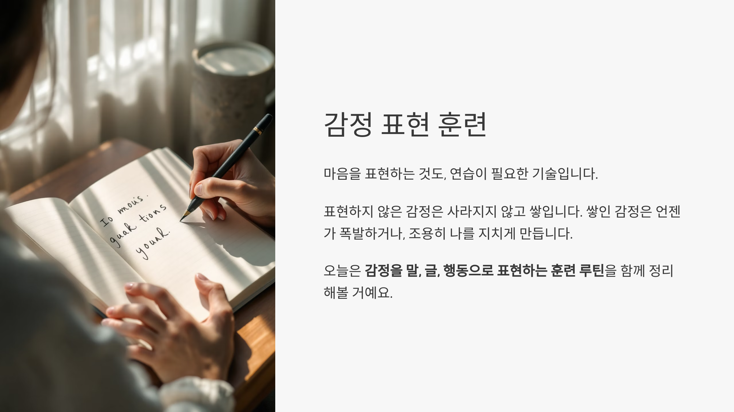 👉 감정 표현은 선천적인 성향이 아니라 훈련 가능한 능력입니다.