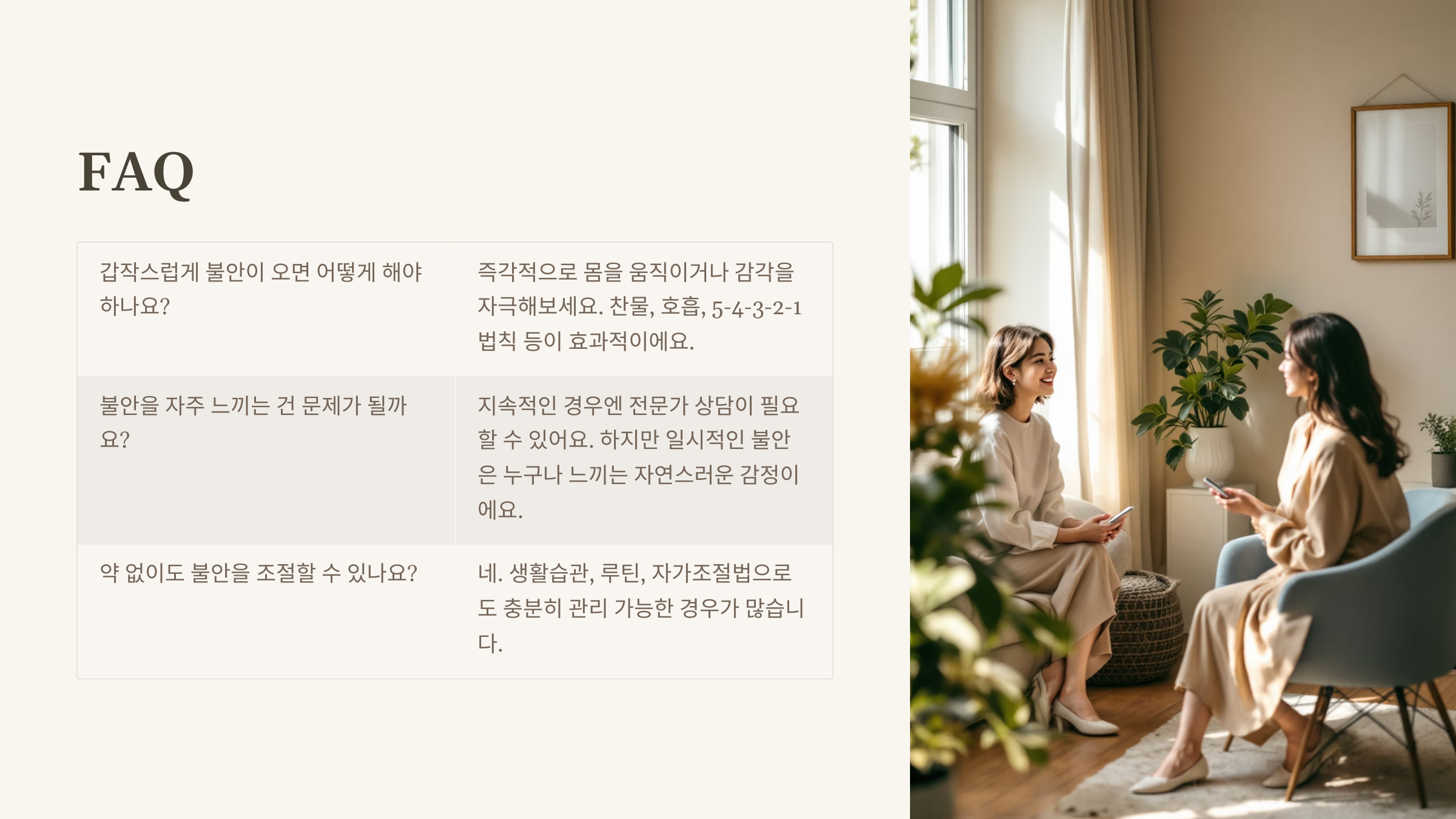 갑작스러운 불안을 다스리는 현실적인 방법들을 소개해드릴게요.