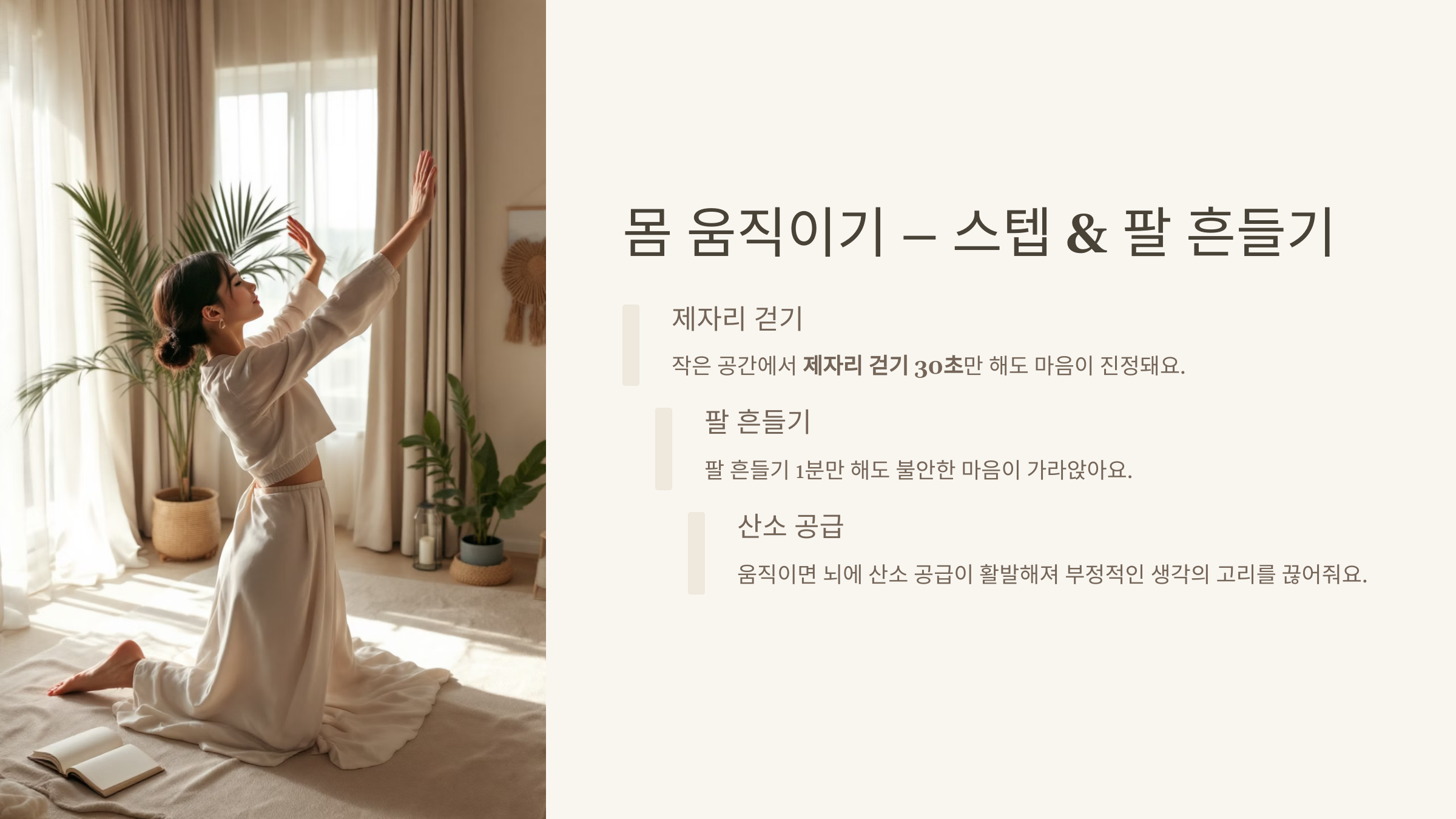 팔 흔들기 1분만 해도 마음이 진정돼요.