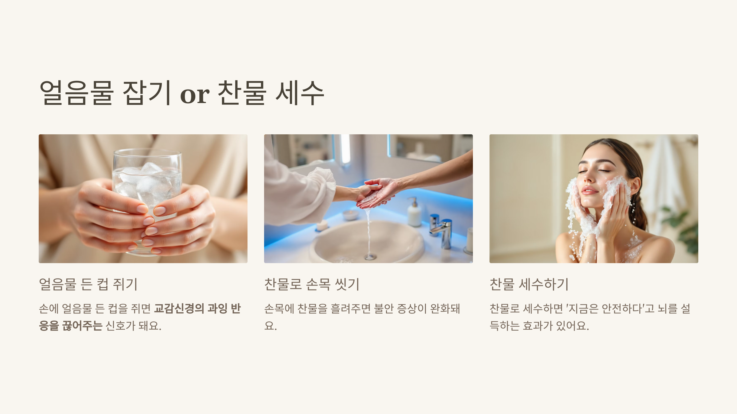 차가운 자극은 교감신경의 과잉 반응을 끊어주는 신호가 돼요.