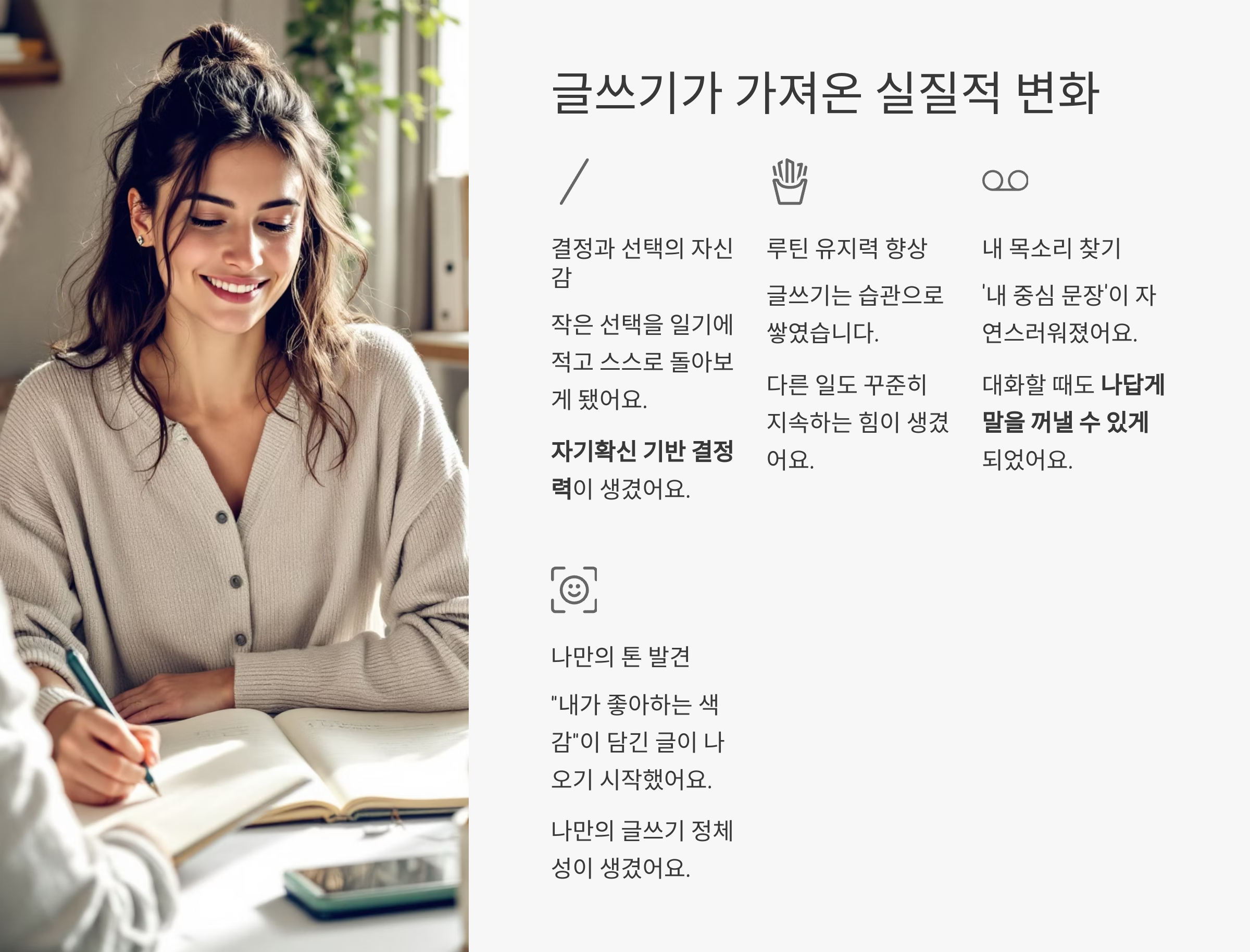 글을 통해 나를 발견하고, 내 하루와 생각이 달라졌어요