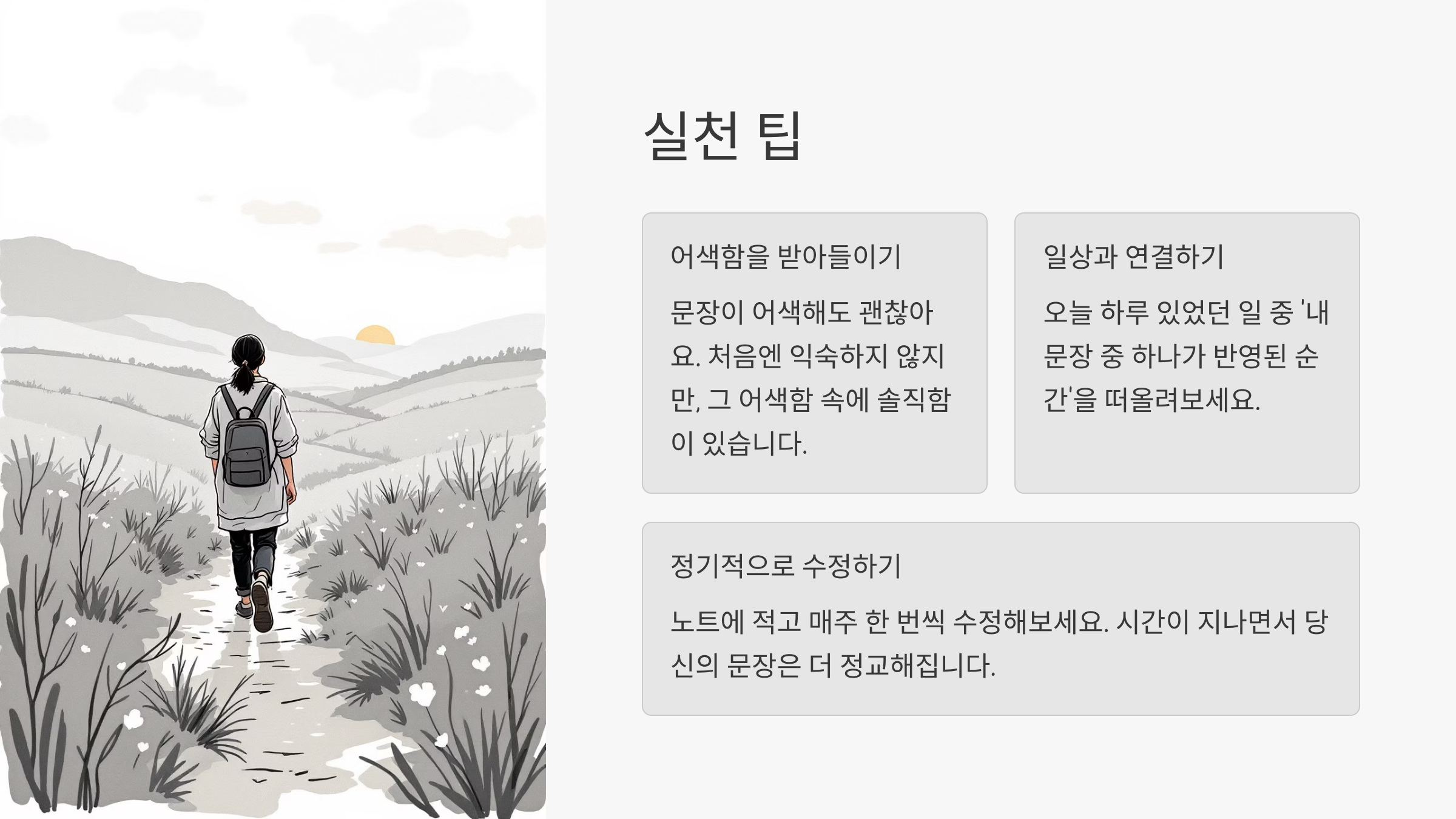 ‘내 문장 중 하나가 반영된 순간’을 떠올려보세요.