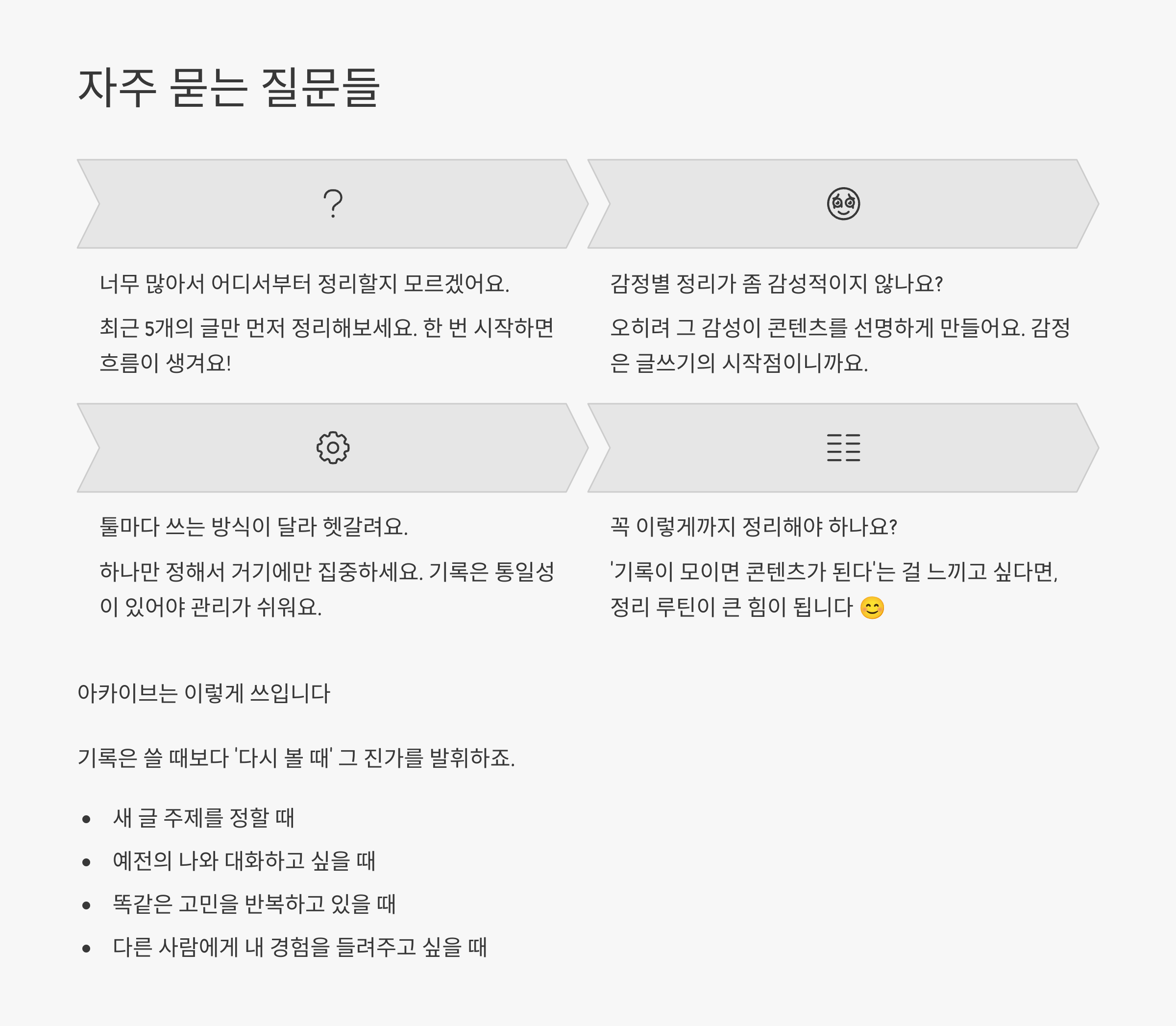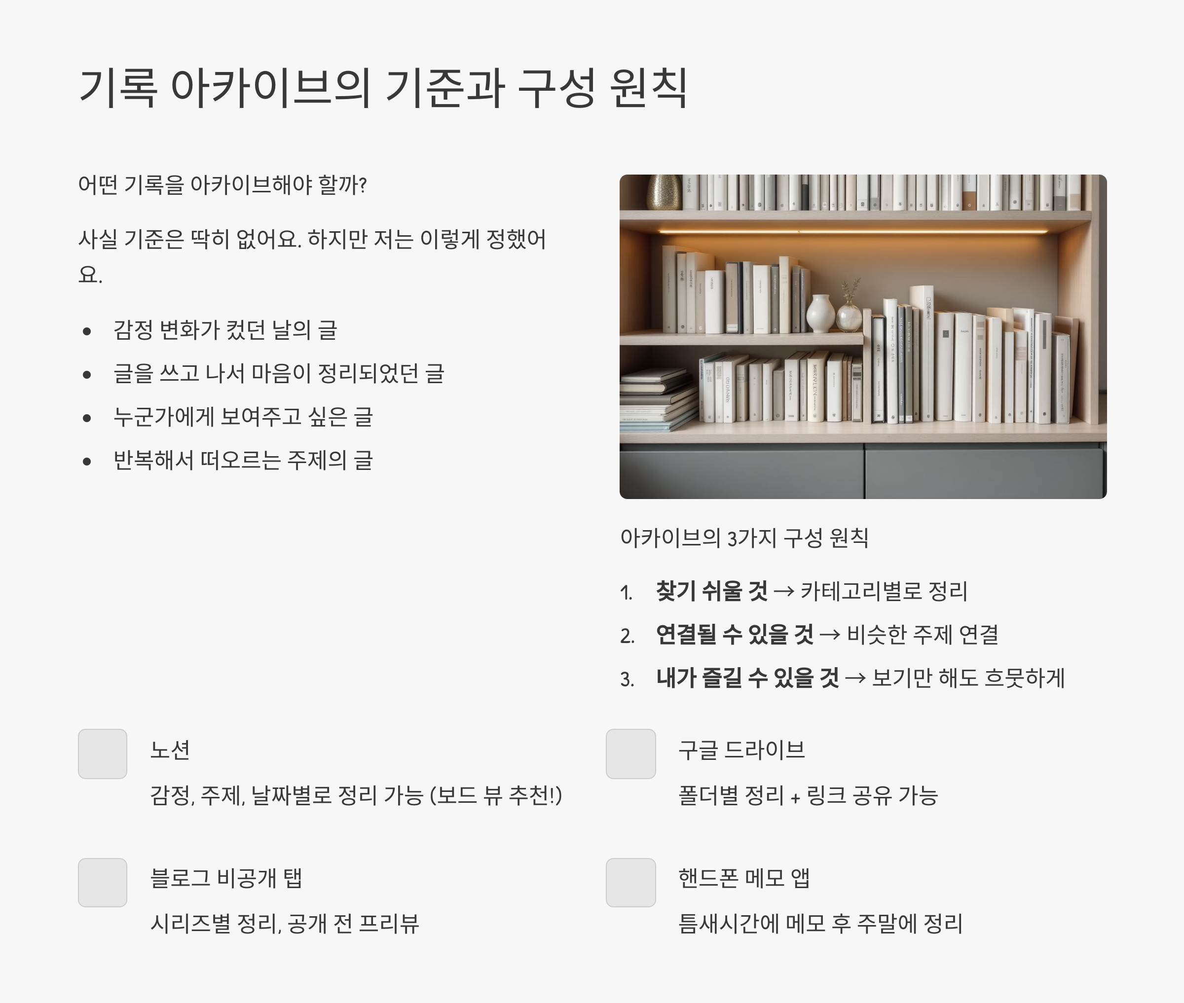 나만의 기록 아카이브를 만들어보기로 했어요.