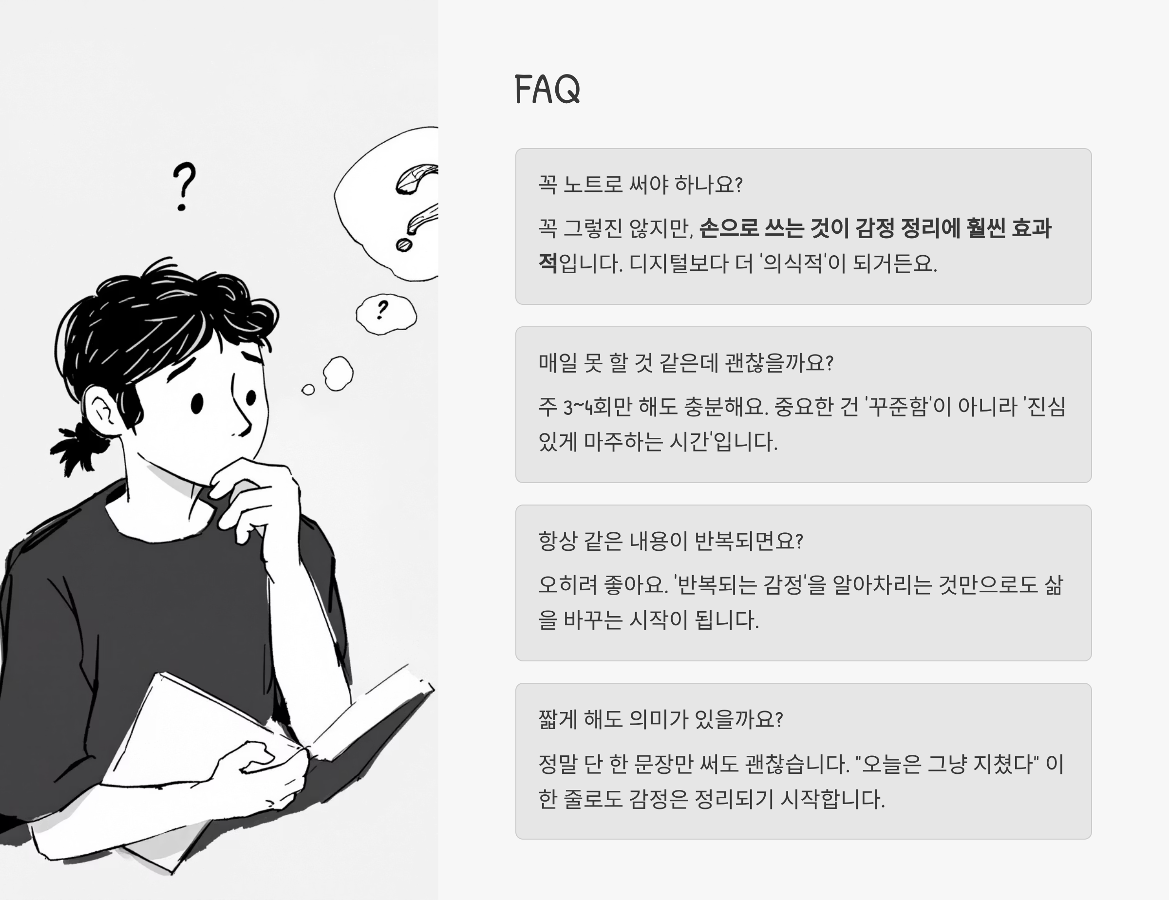 - 하루 동안 쌓인 감정을 덜어낼 수 있어요.
