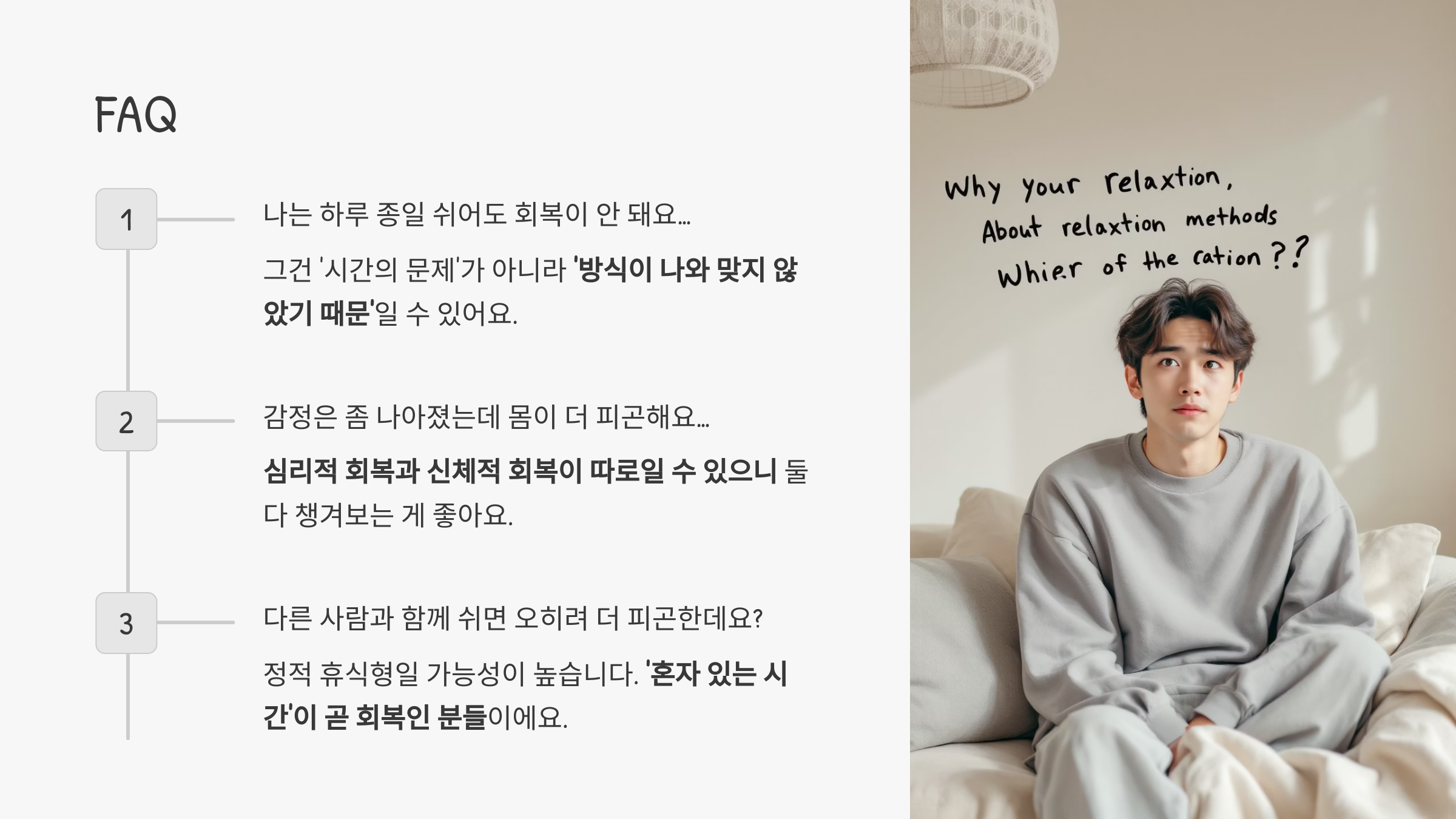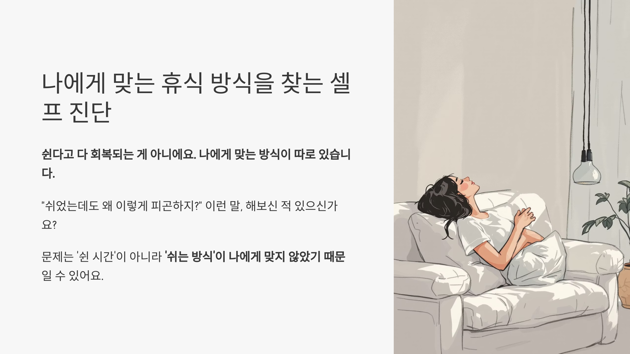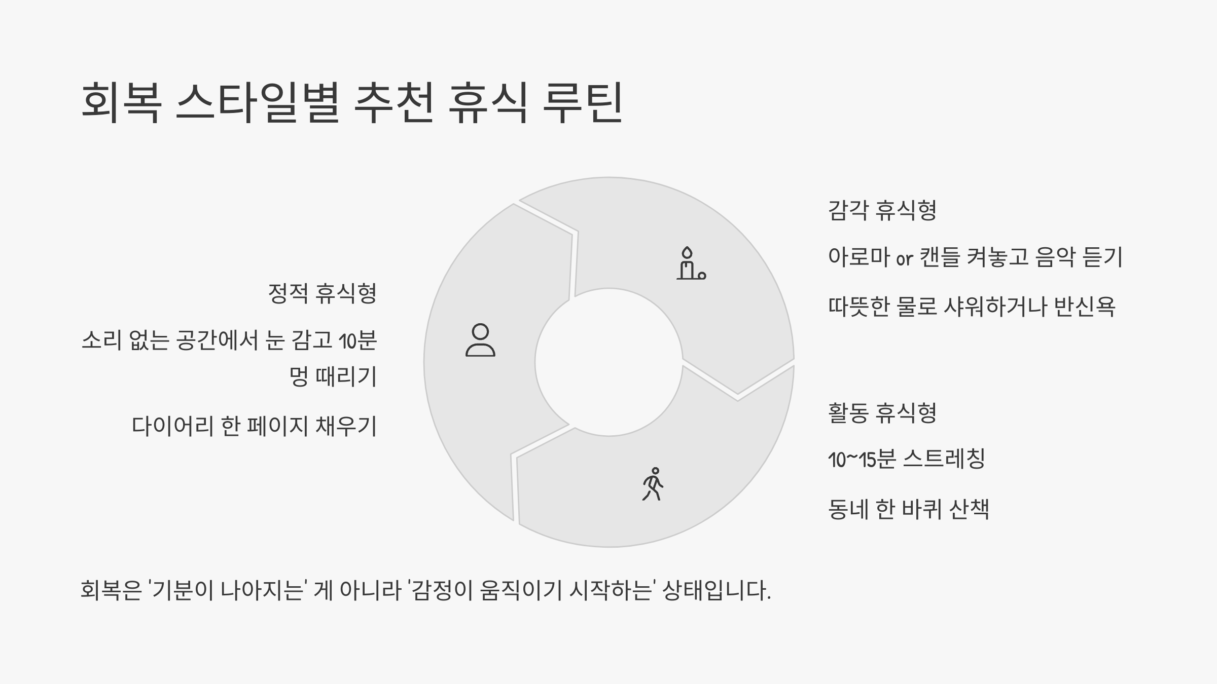 쉰다고 다 회복되는 게 아니에요. 나에게 맞는 방식이 따로 있습니다