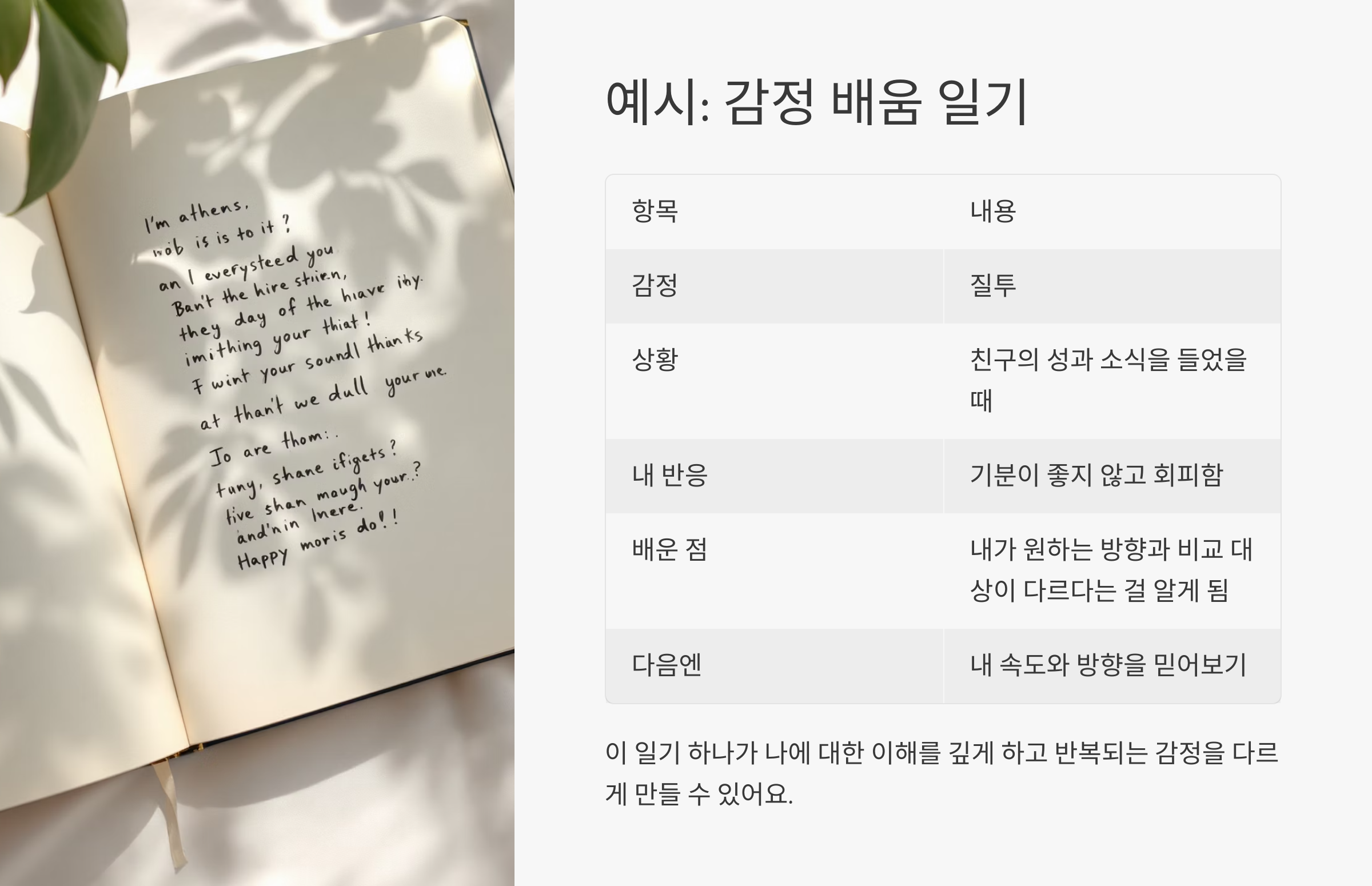 기록을 통한 ‘거리두기’는 감정 회복에 매우 효과적이에요.
