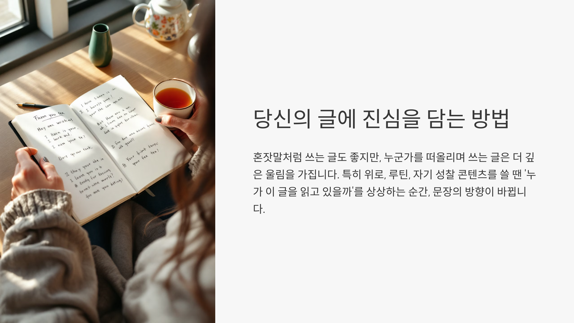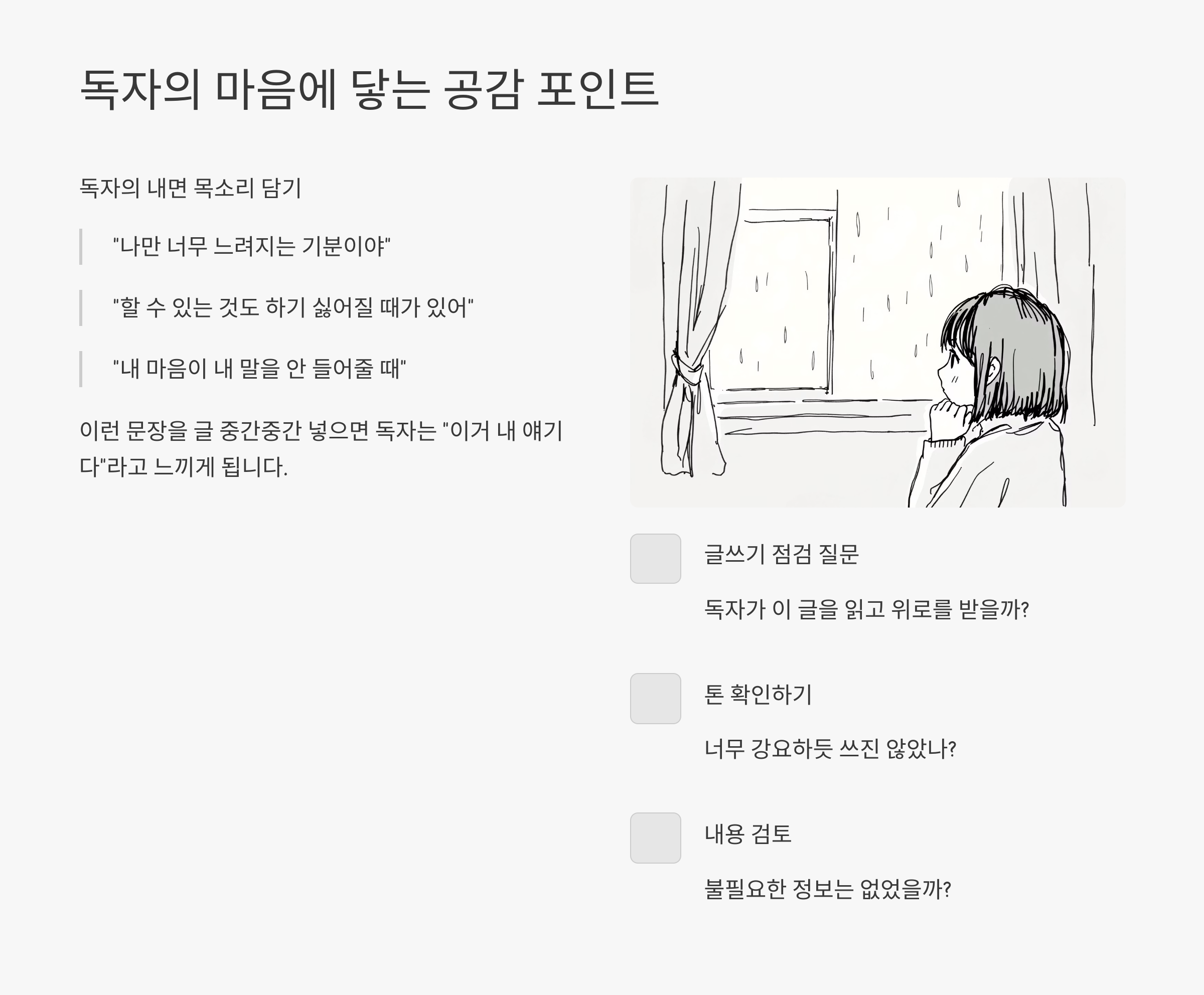 특히 위로, 루틴, 자기 성찰 콘텐츠를 쓸 땐