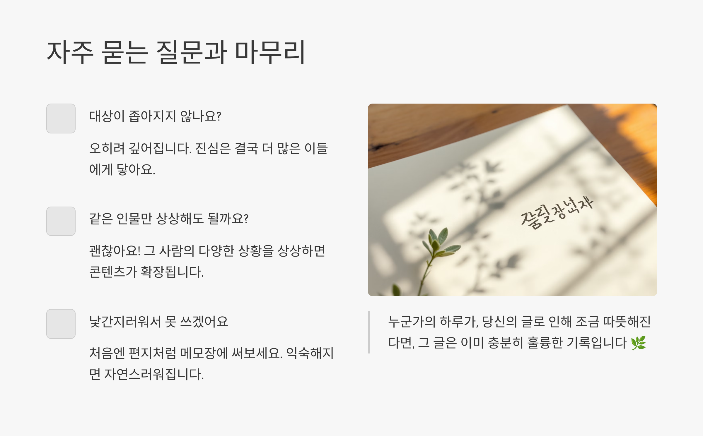 누군가를 떠올리며 쓰는 글은 더 깊은 울림을 가집니다.