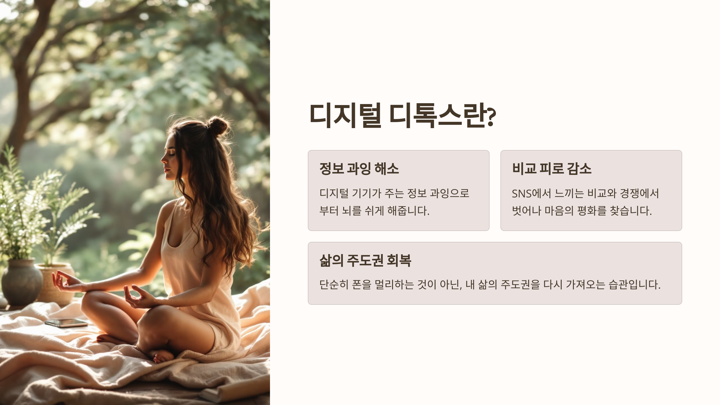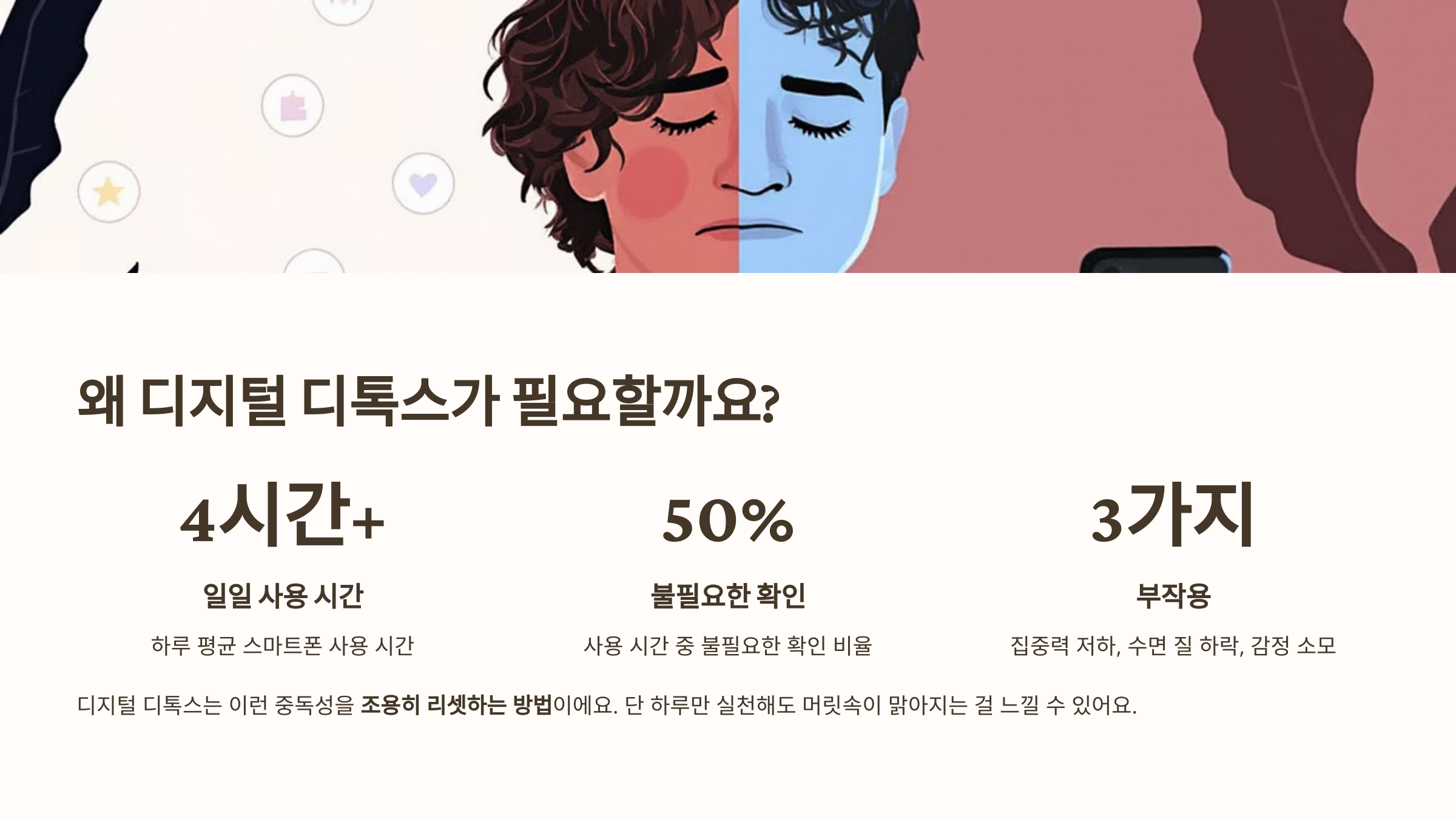 디지털 디톡스는 이런 중독성을 조용히 리셋하는 방법이에요.