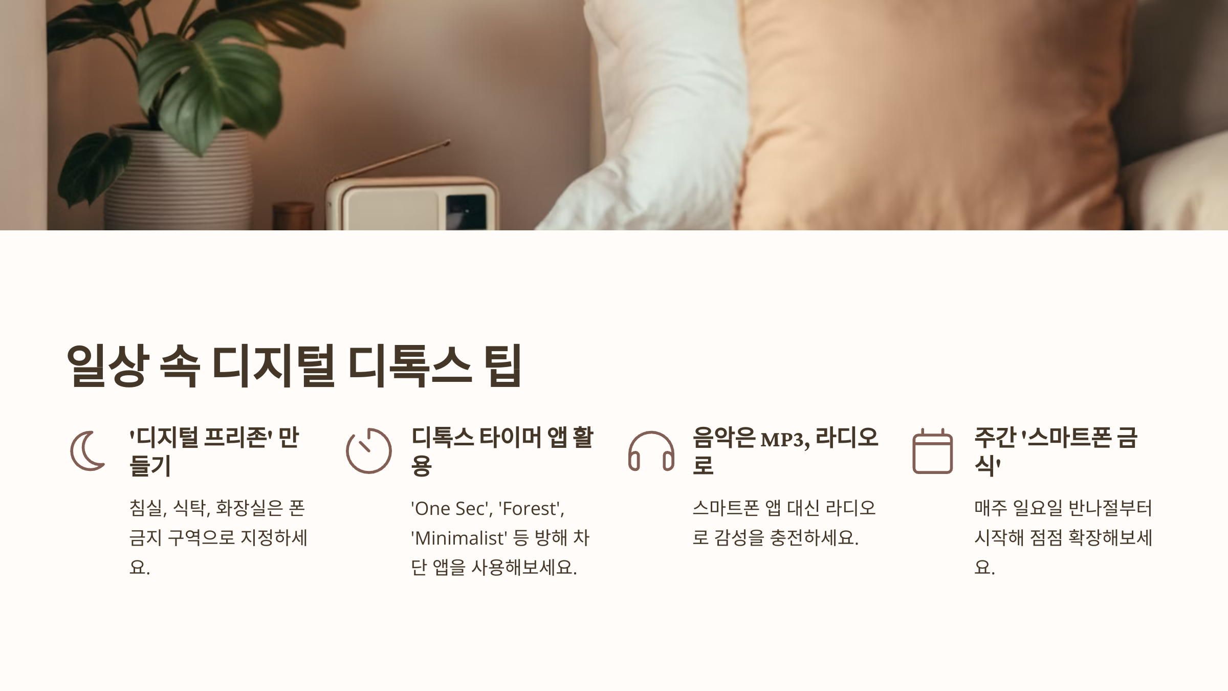 : 스마트폰 앱 대신 라디오로 감성 충전 - ⏳ 매주 일요일 ‘스마트폰 반나절 금식’ 시도하기