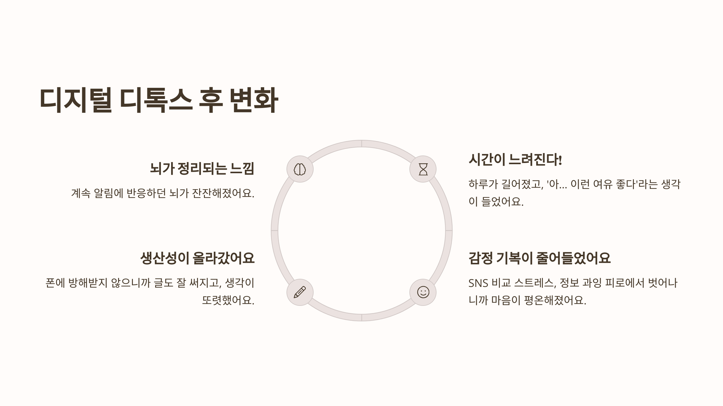 : 계속 알림에 반응하던 뇌가 잔잔해졌어요. - ⏳ 시간이 느려진다!