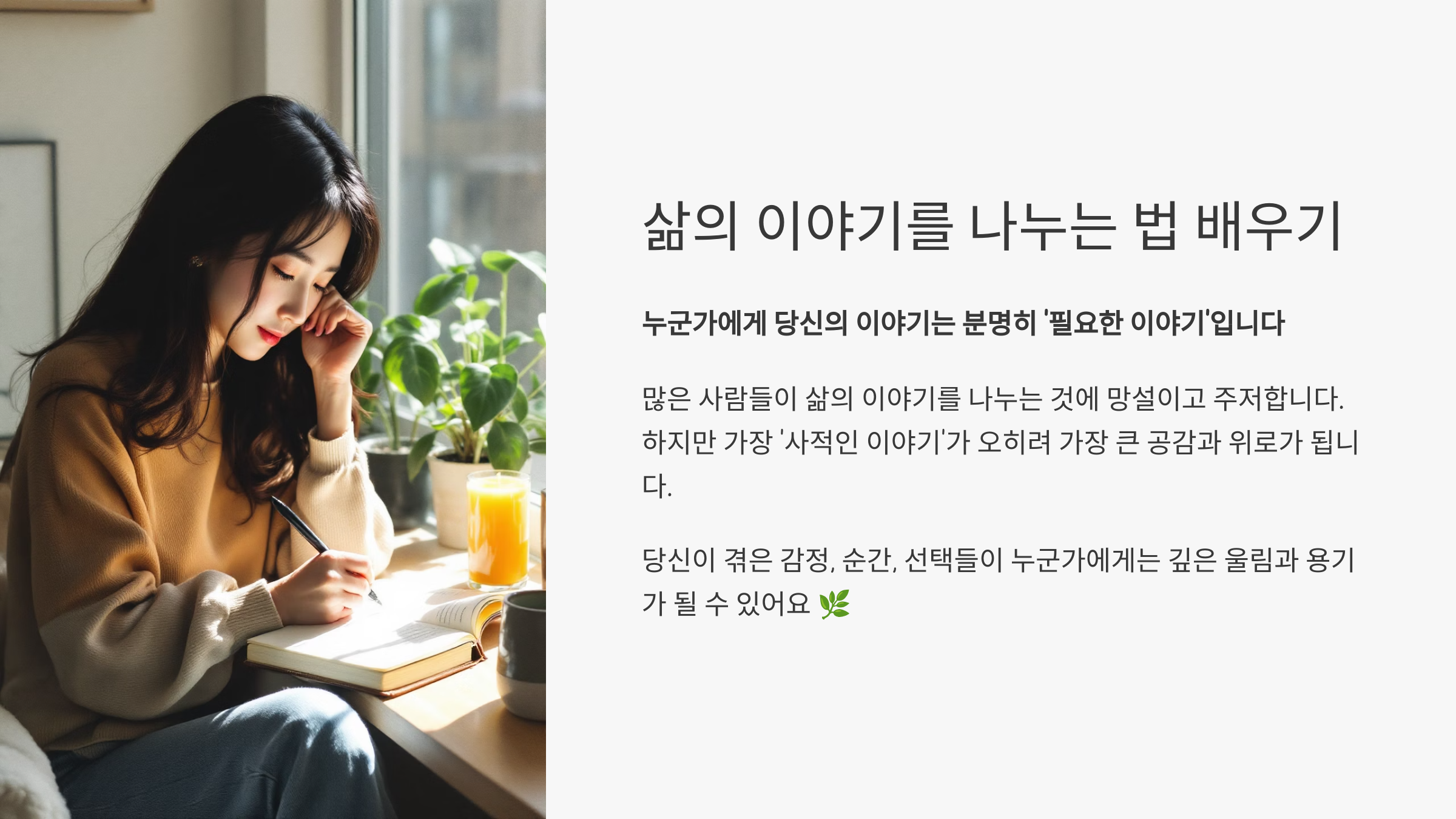 삶의 이야기가 너무 개인적인데, 나눠도 될까요?