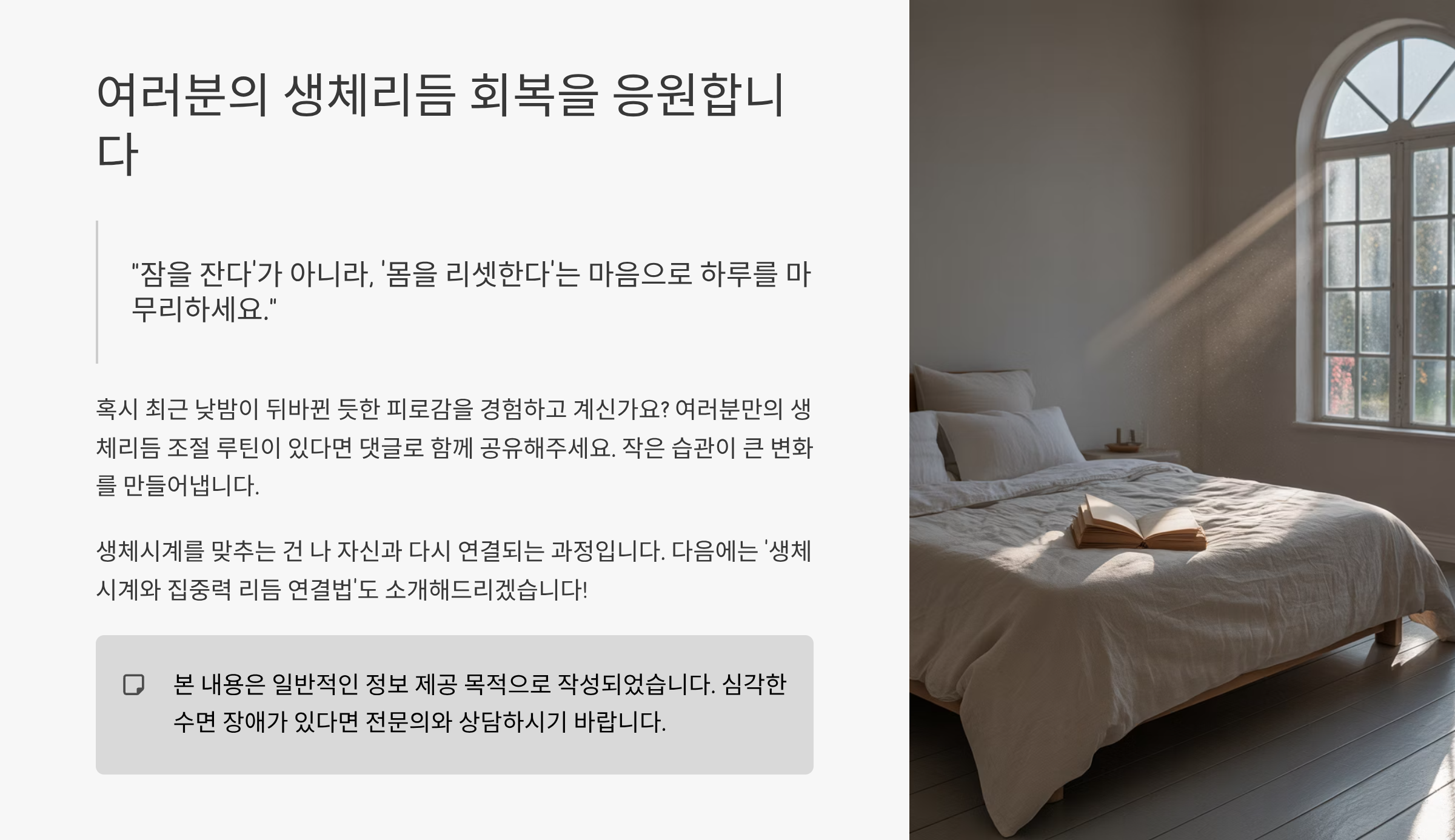 지속 가능한 작은 루틴이 생체시계의 흐름을 부드럽게 이어줍니다.