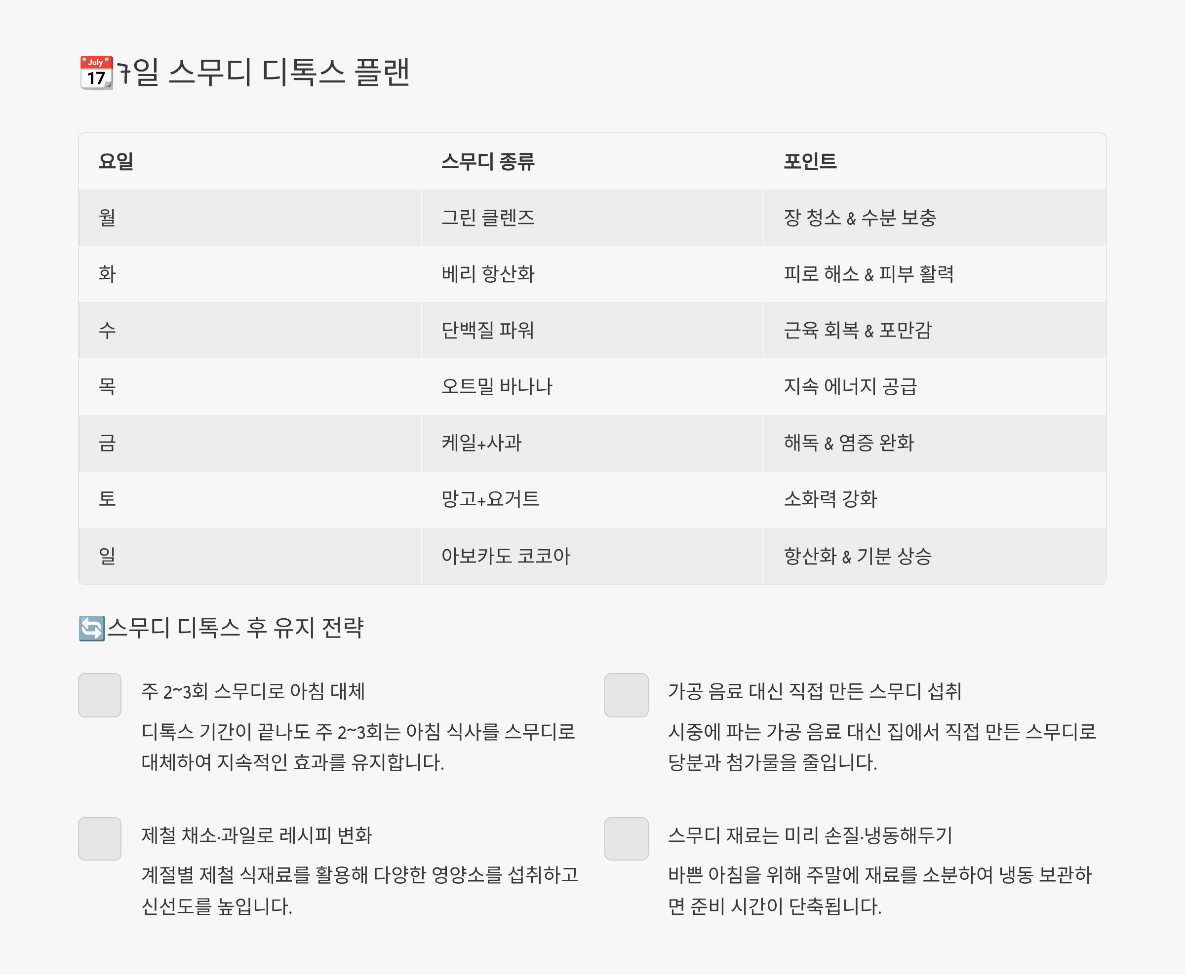 📆7일 스무디 디톡스 플랜