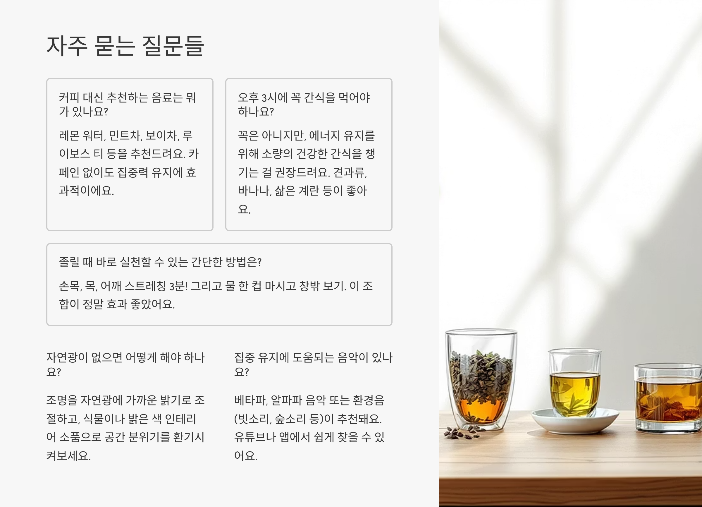 오후 3시 에너지 부스터: 대체 커피 없이 집중 유지하는 법