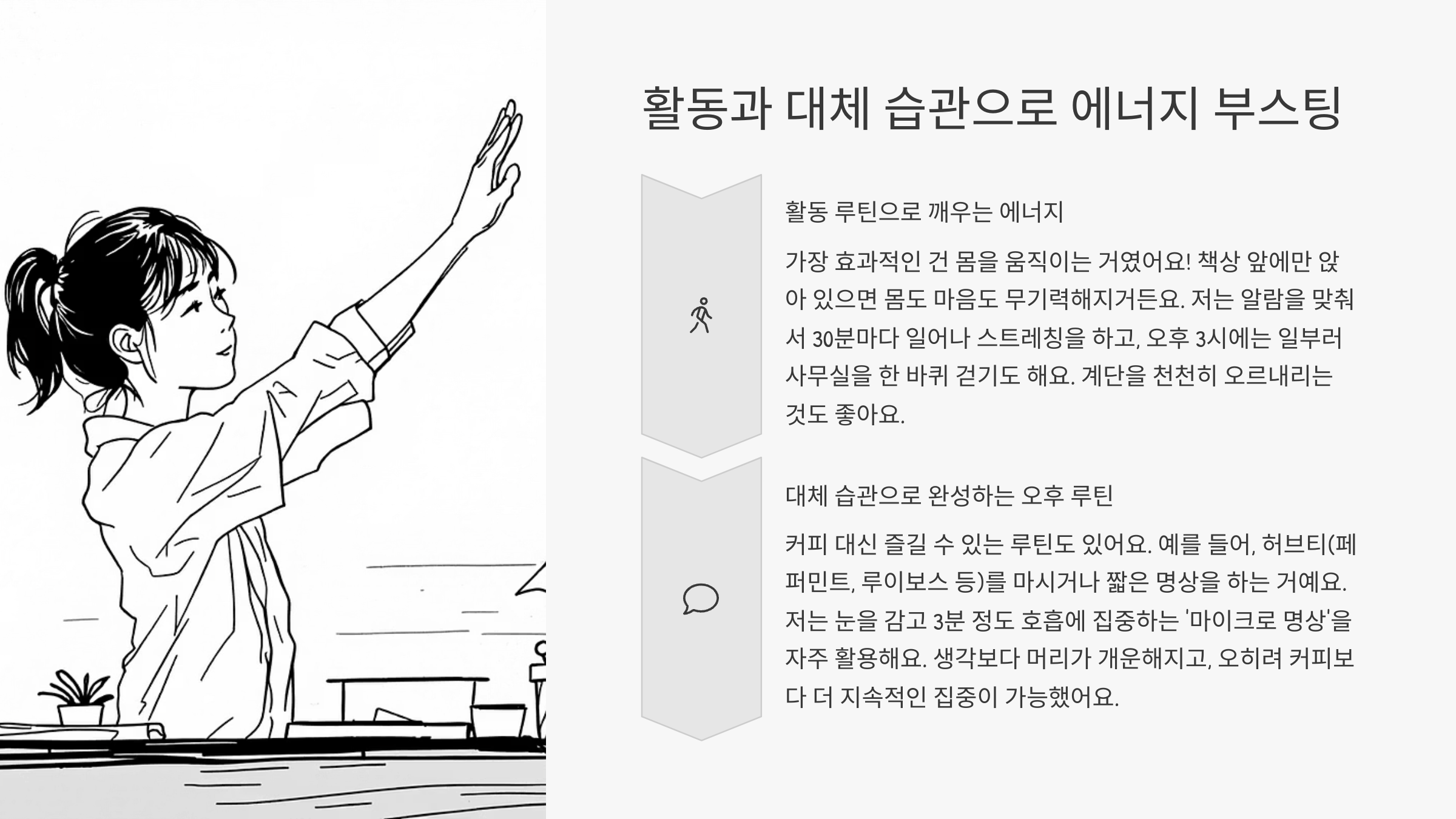 - 활동 루틴으로 깨우는 에너지
