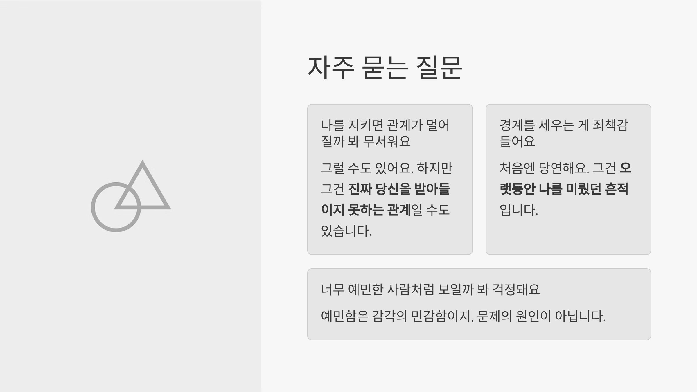 인간관계 안에서 나를 지키는 연습을 함께 해보려 합니다.