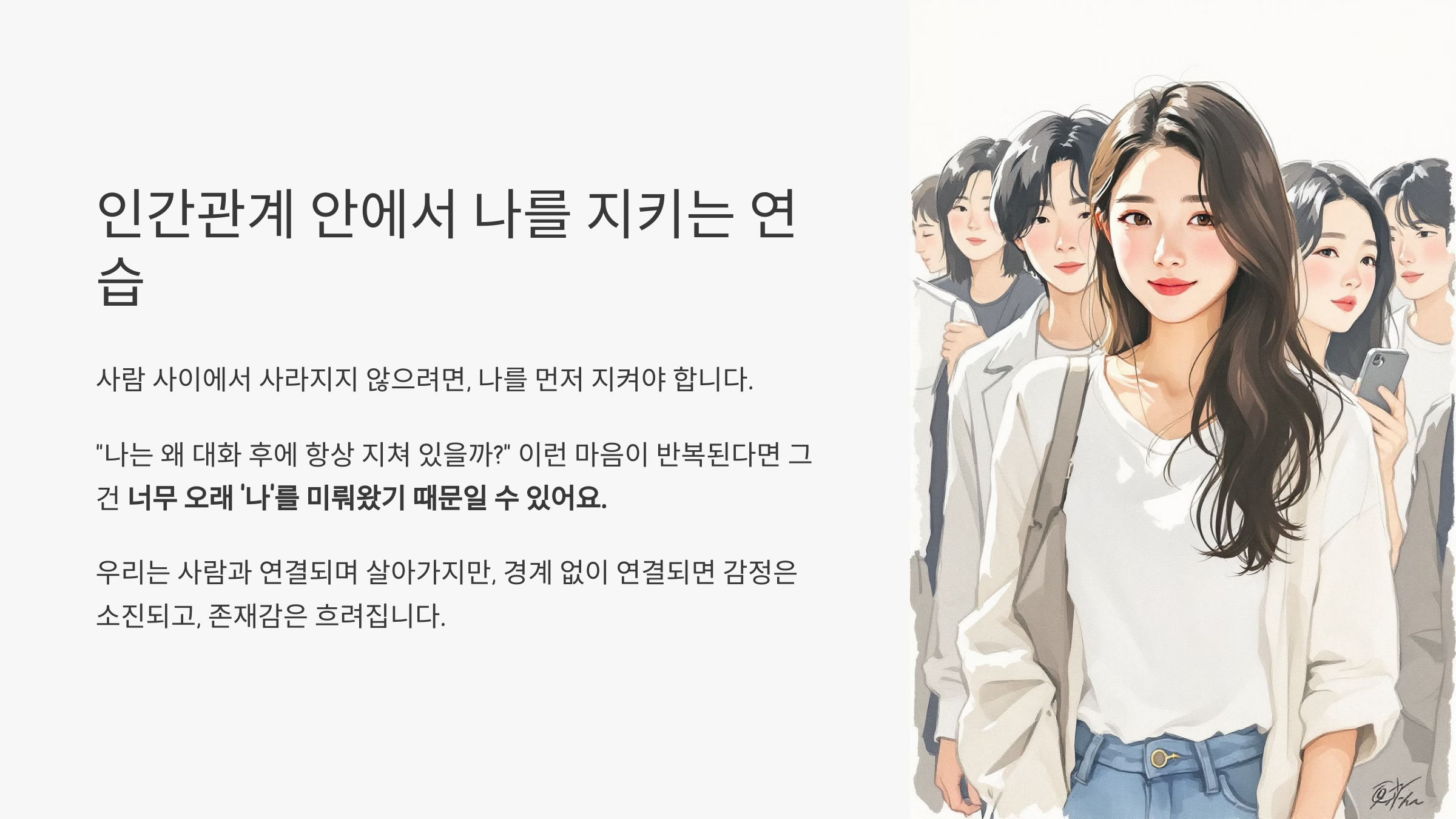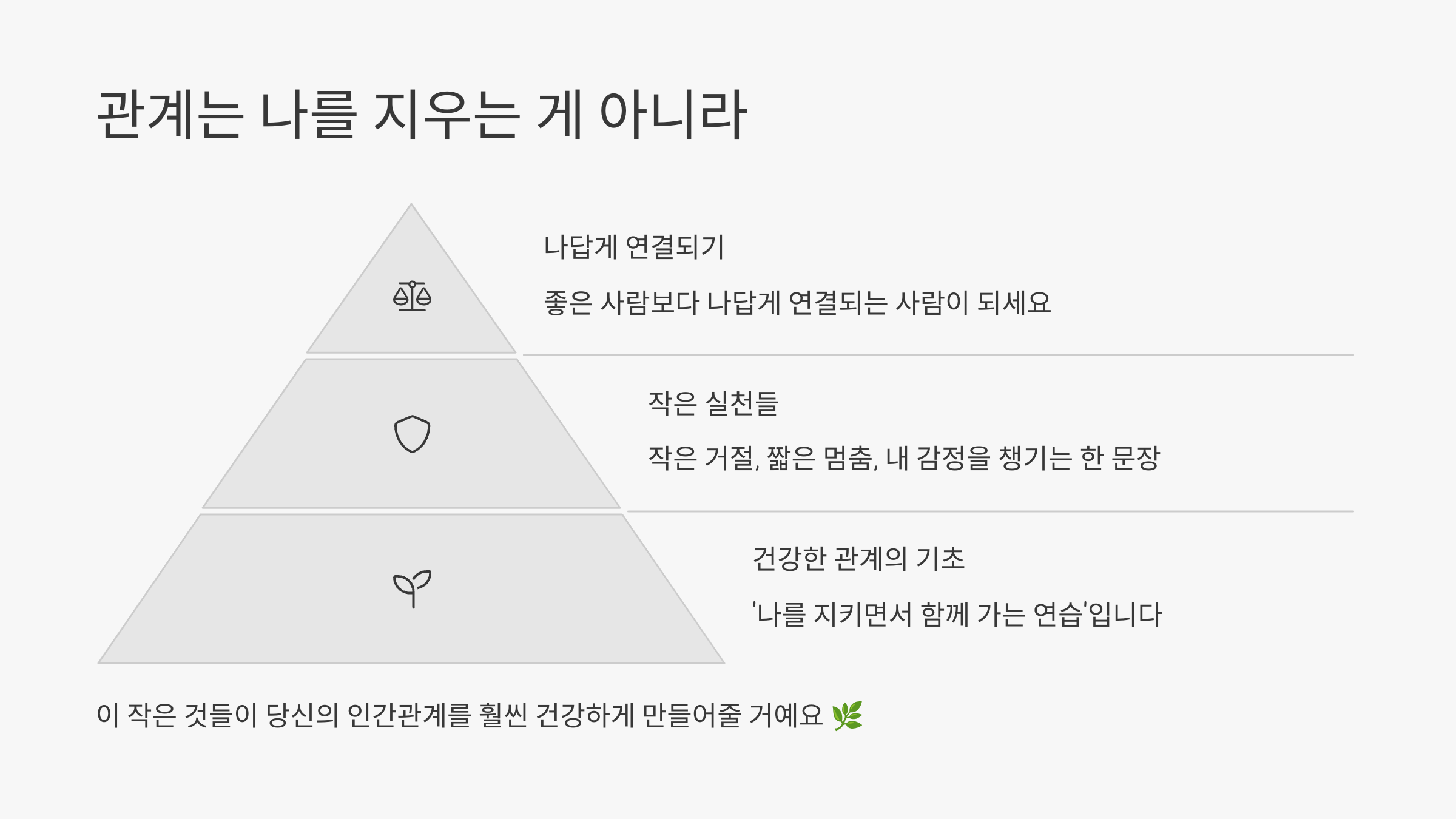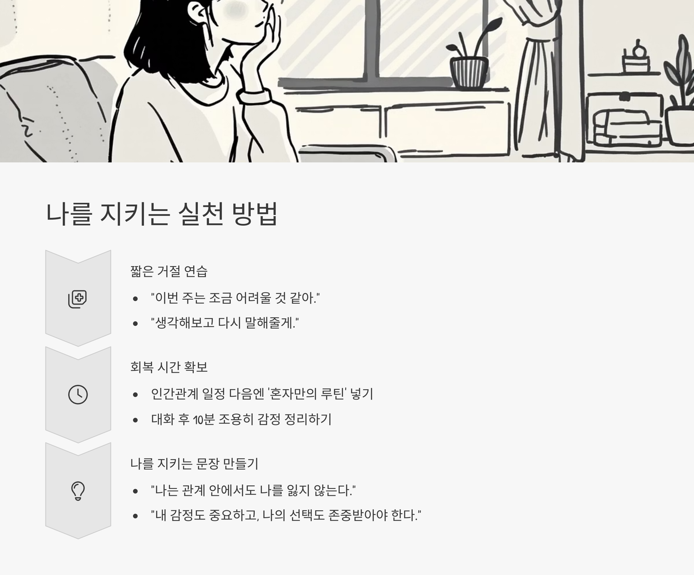 👉 나를 지키는 건 이기적인 게 아니라, 관계를 오래 지속시키는 방법입니다.
