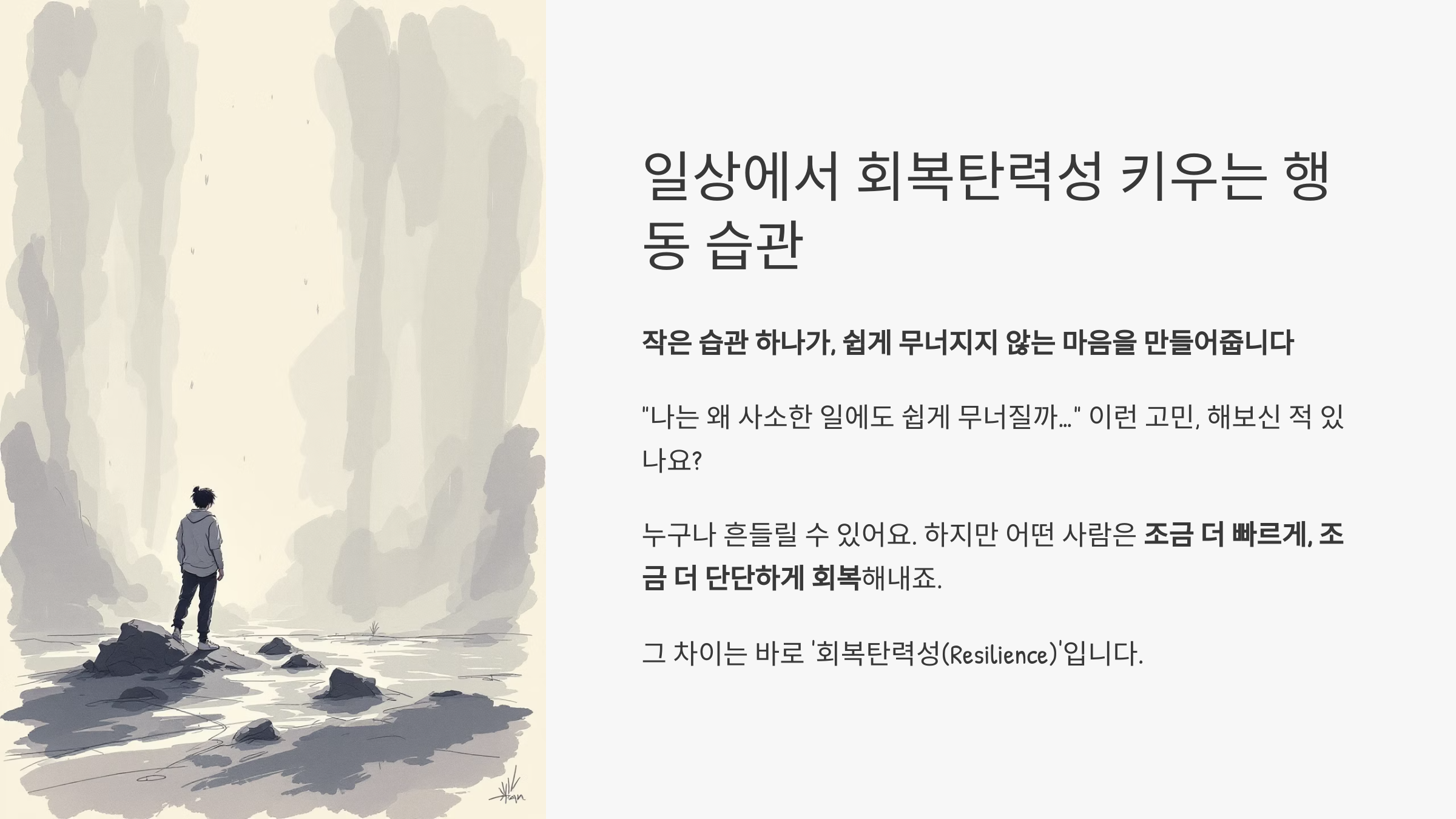 일상 속 작은 행동 습관을 통해 회복탄력성을 키우는 방법을 함께 나눠볼게요.