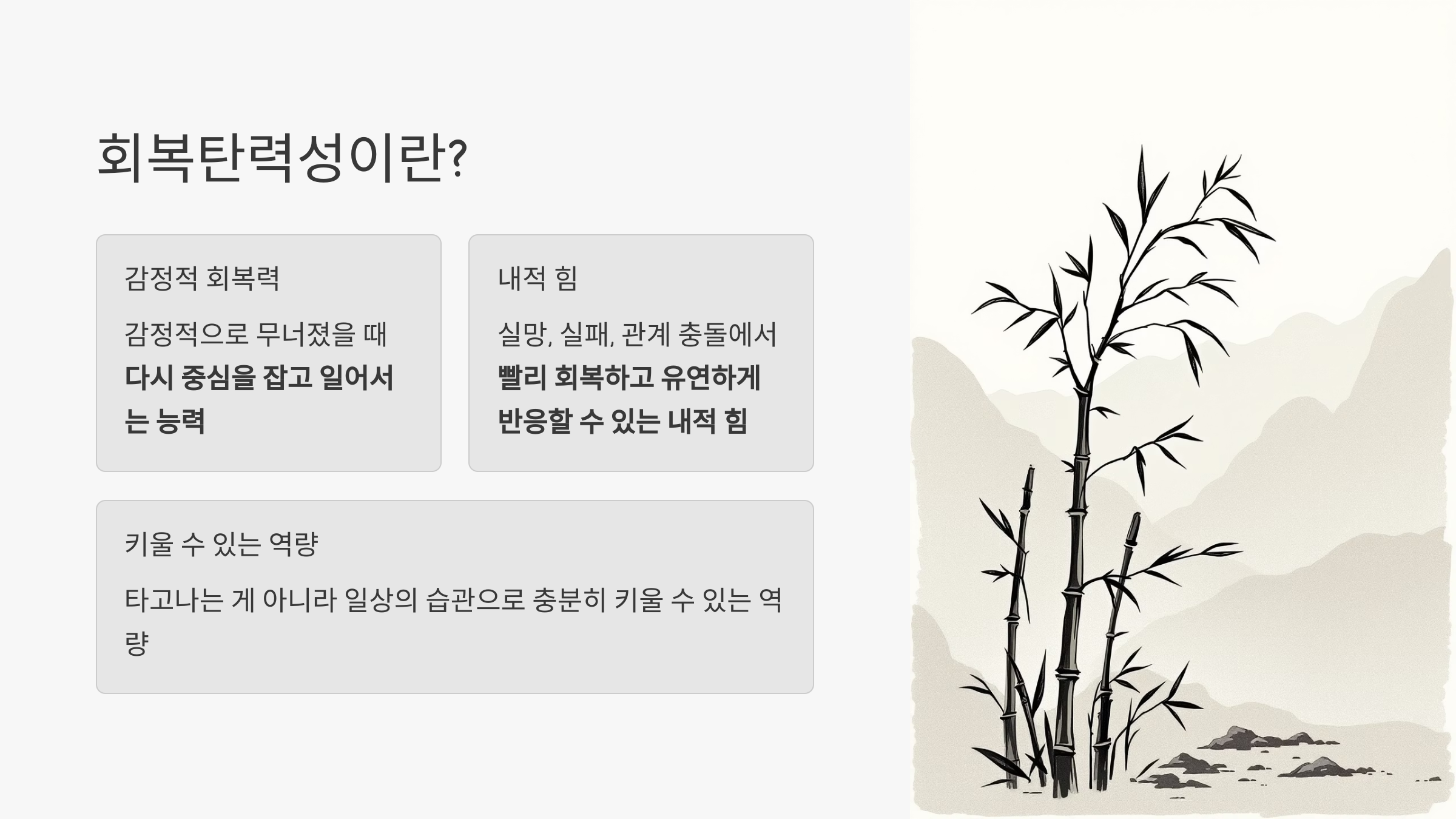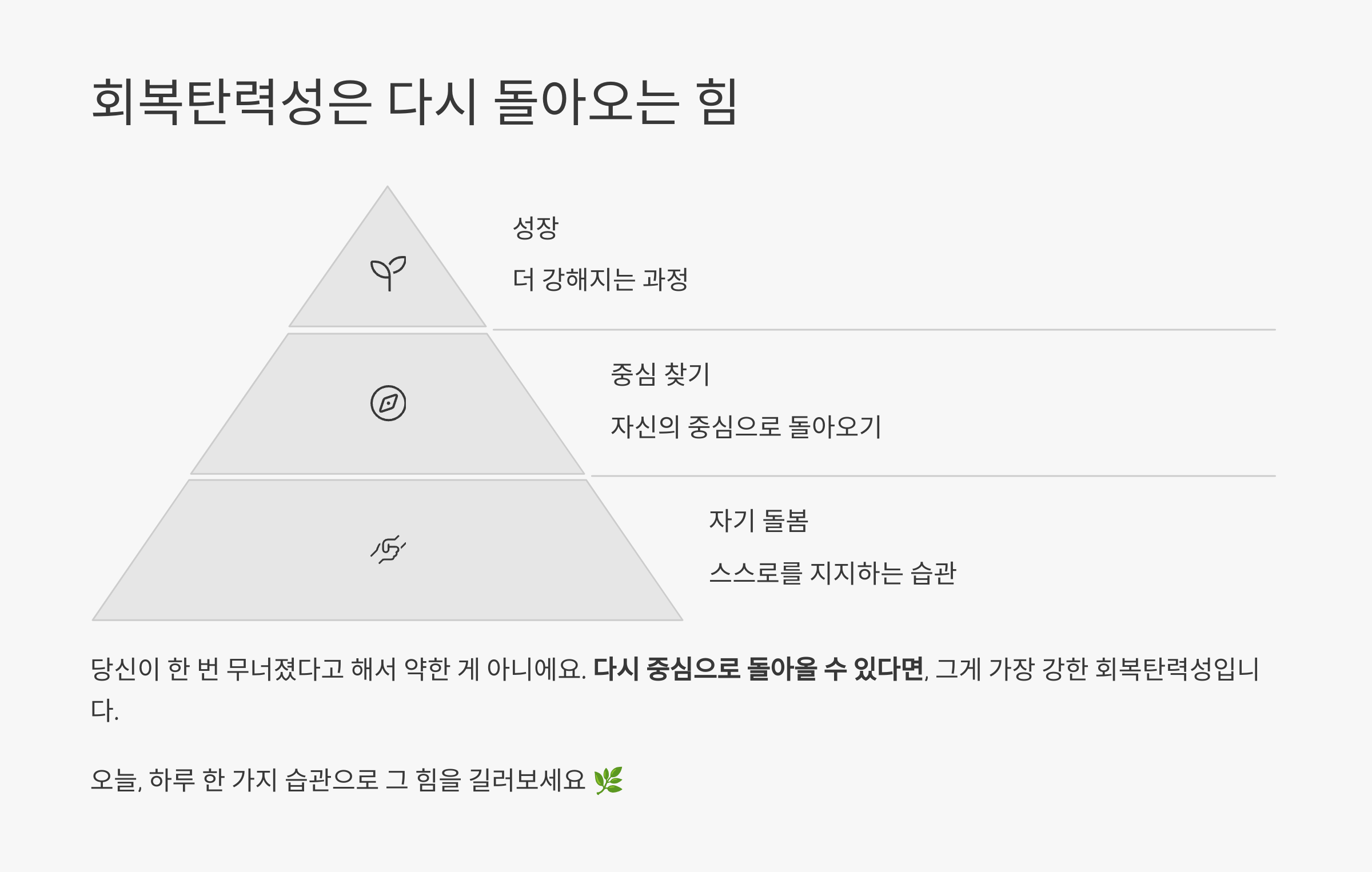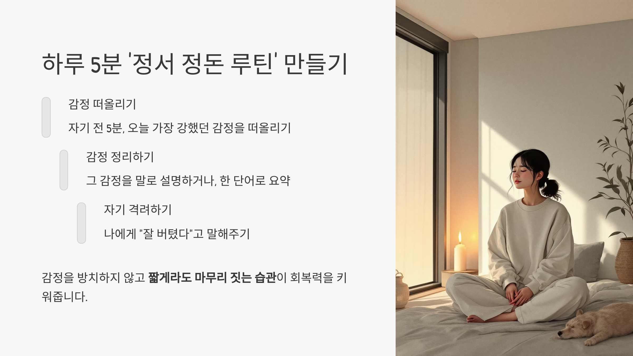 특히 ‘반복되는 감정 루틴’은 회복탄력성을 키우는 핵심 도구입니다.