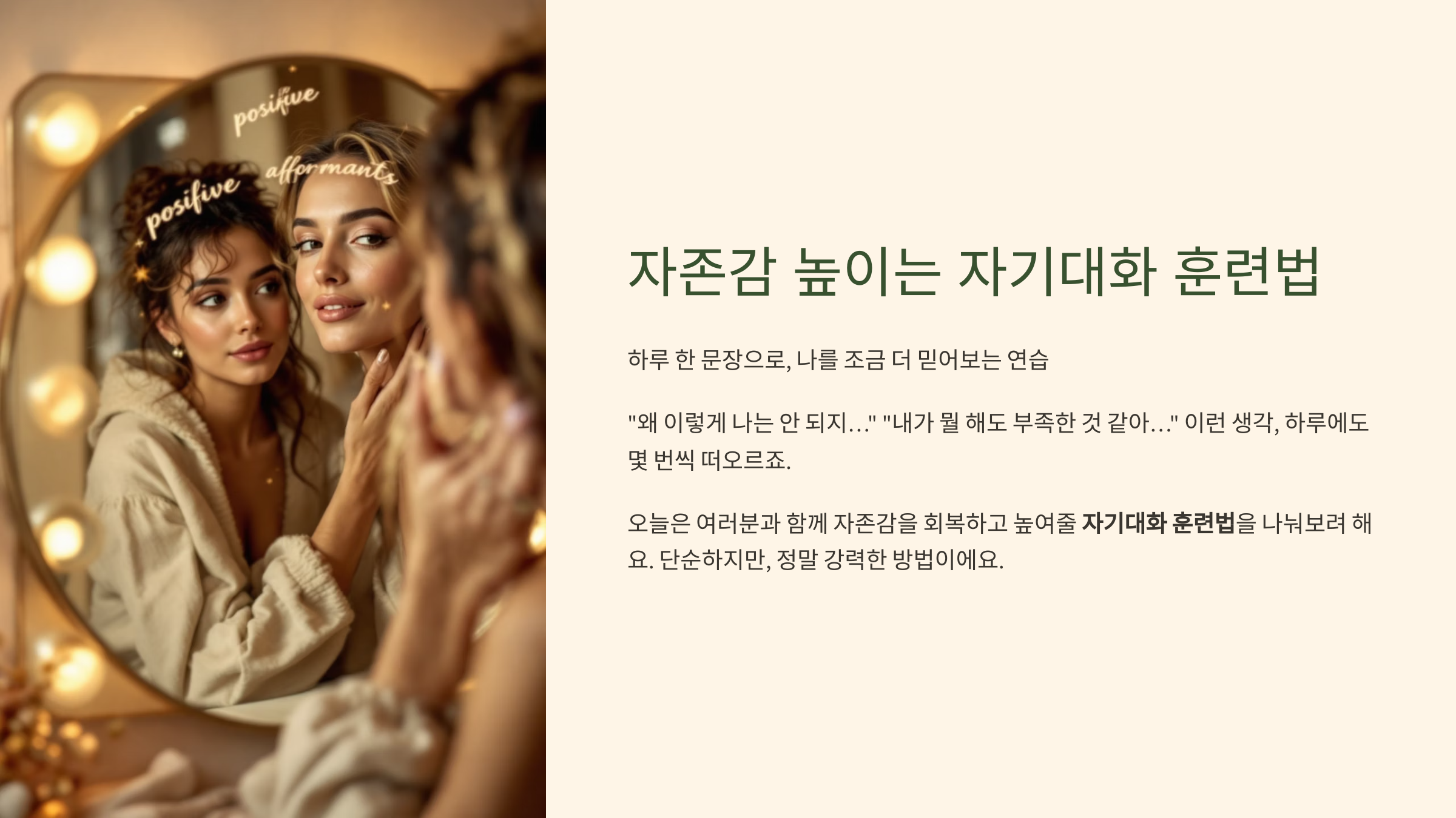 자존감은 ‘내가 나를 어떻게 대하느냐’에 따라 크게 달라져요.