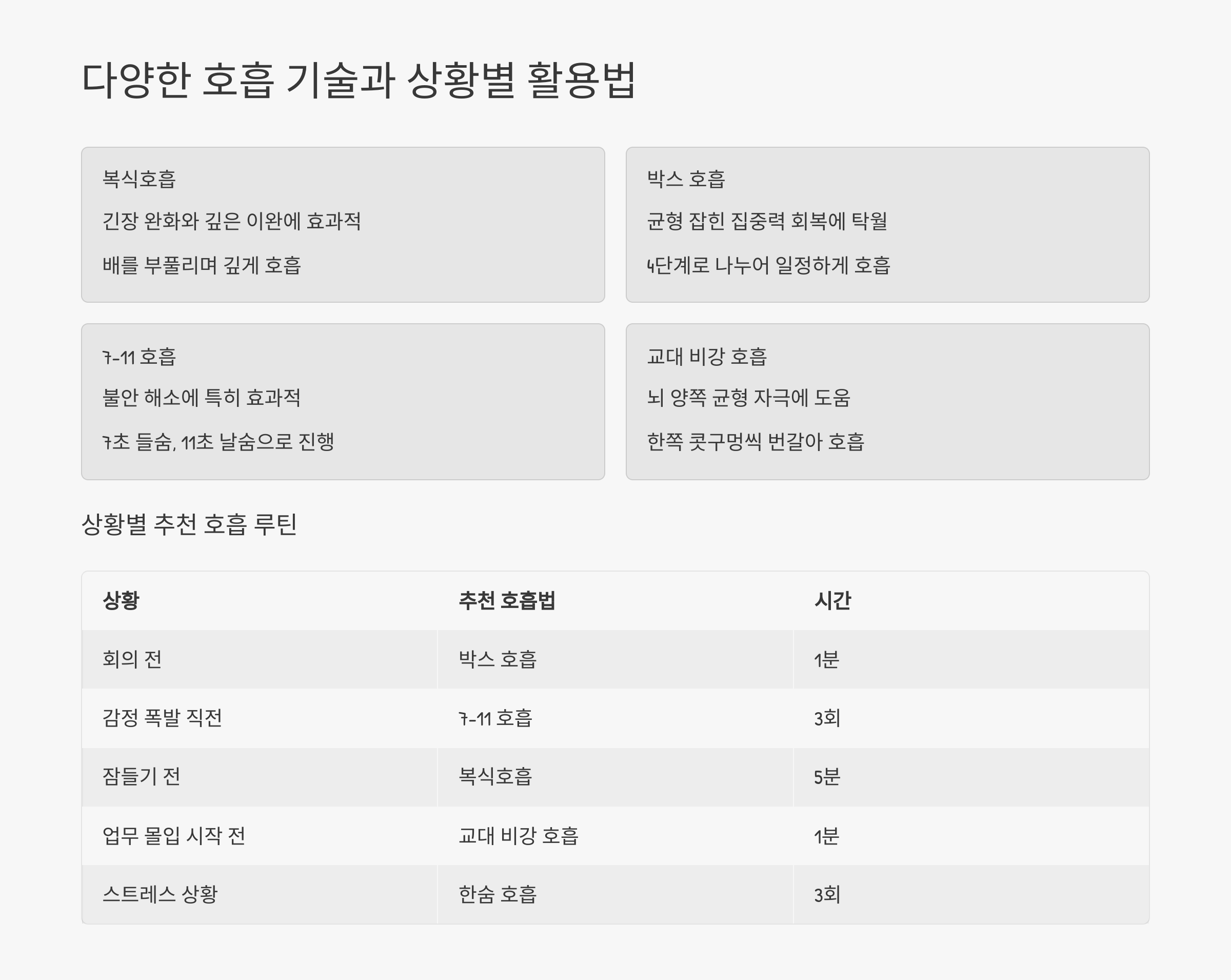 호흡법은 상황에 따라 다양하게 쓸 수 있어요: