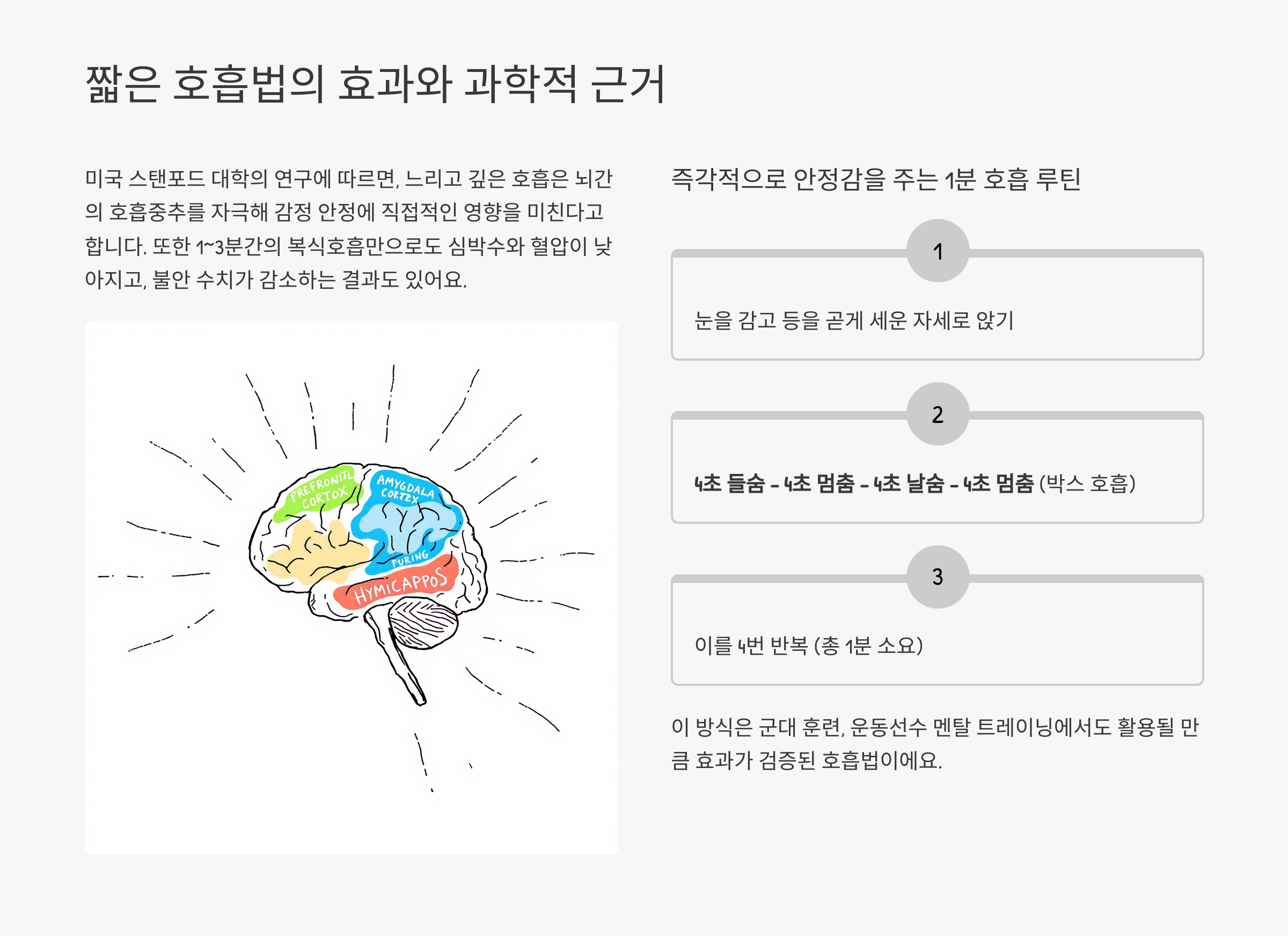 - 즉각적으로 안정감을 주는 1분 호흡 루틴