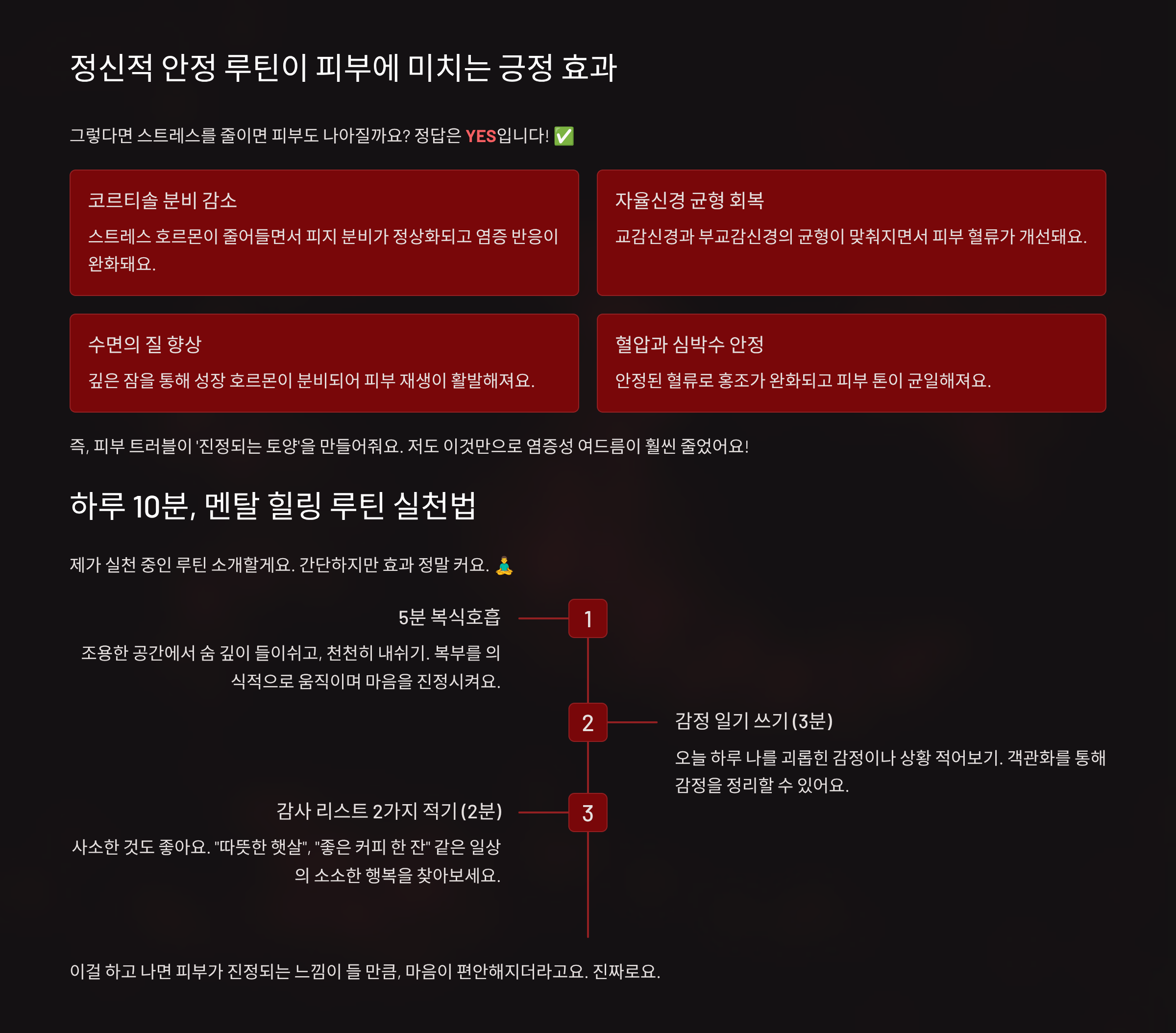 - 정신적 안정 루틴이 피부에 미치는 긍정 효과