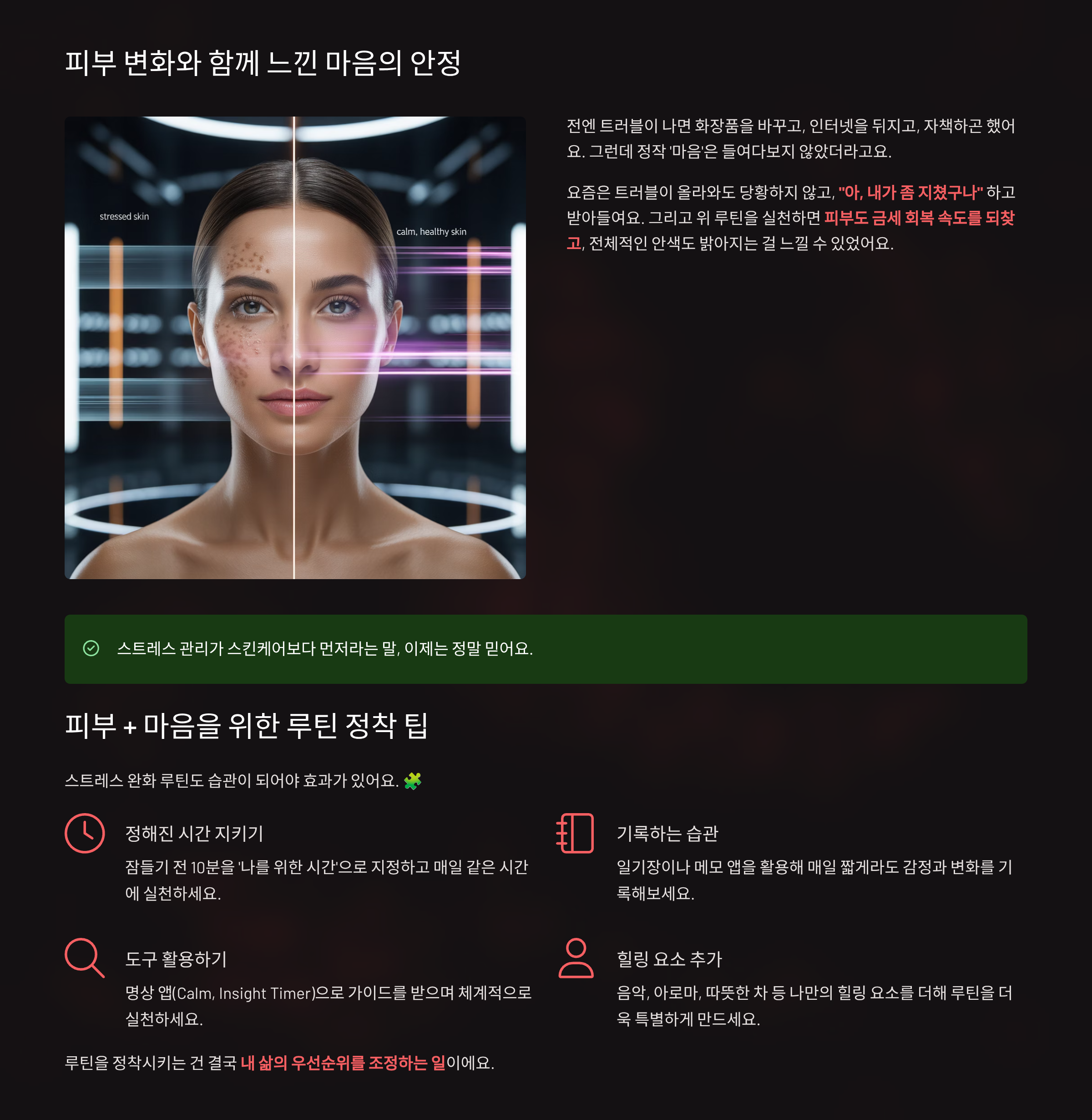 - 피부 + 마음을 위한 루틴 정착 팁