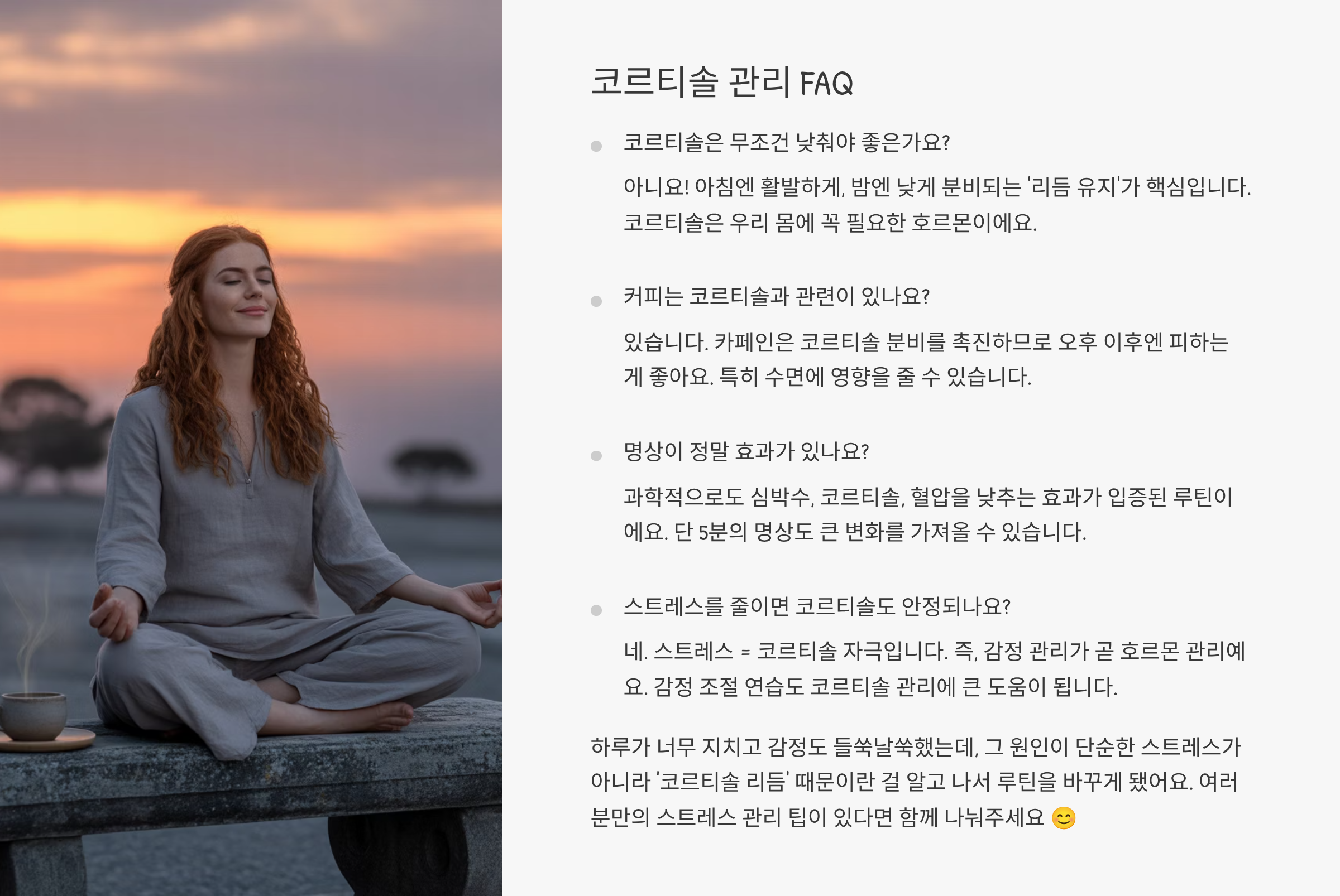 저는 코르티솔 흐름을 이해하고 나서 하루가 덜 흔들리고, 더 안정됐어요. 지금 그 방법을 공유드릴게요!