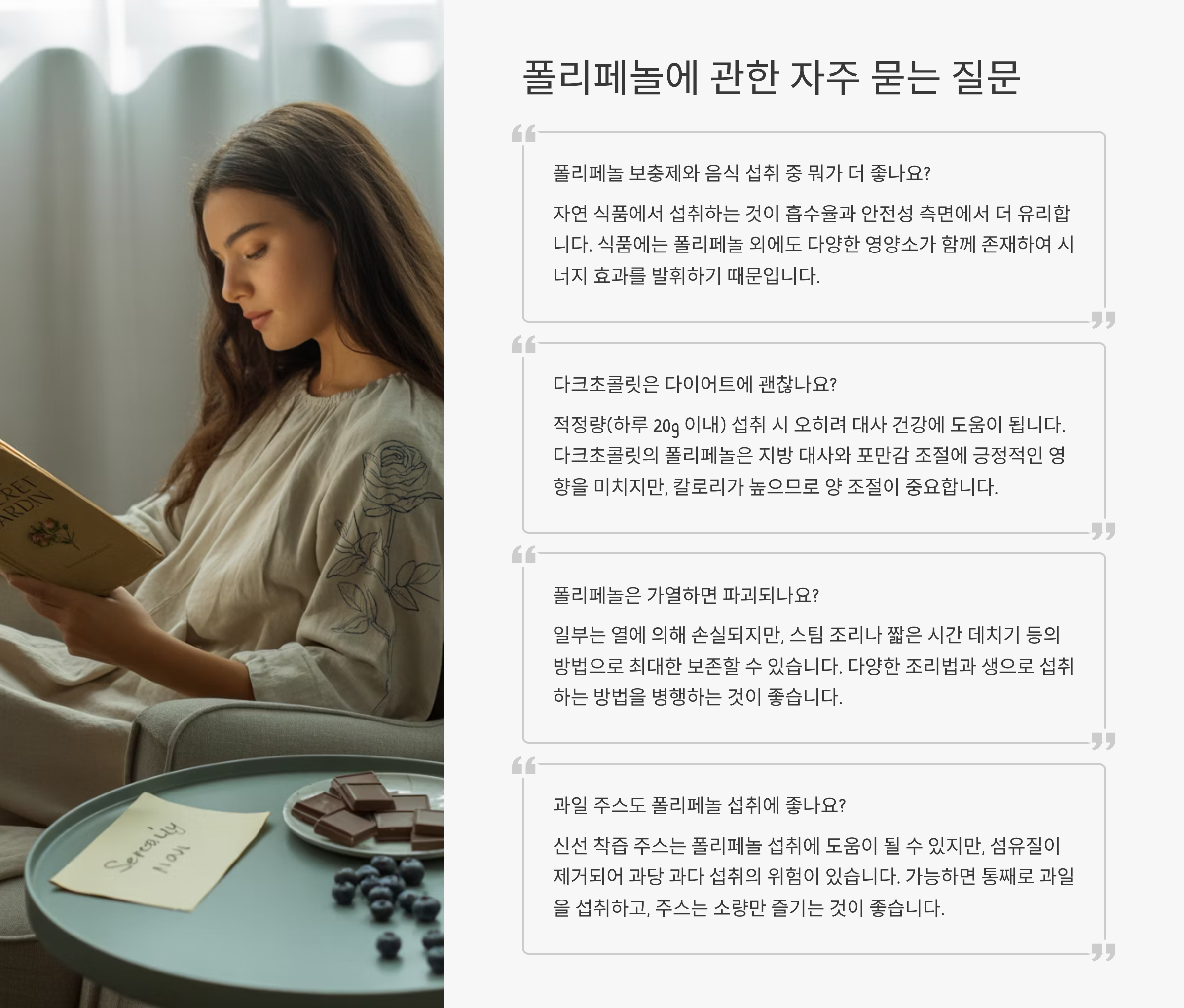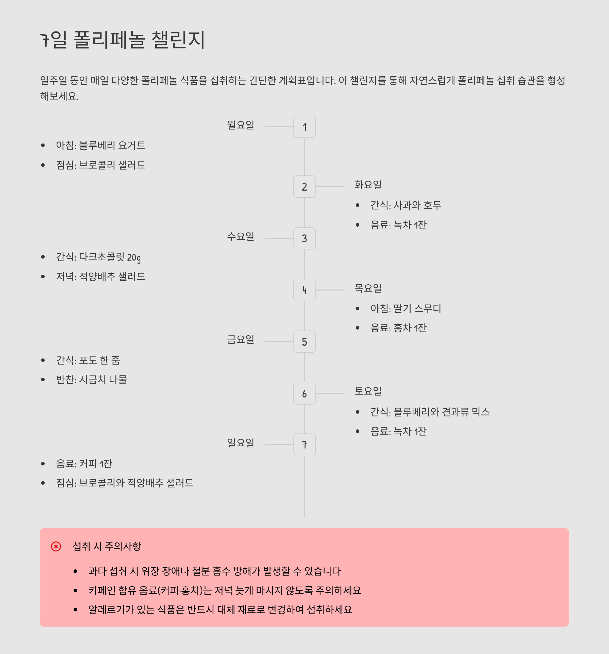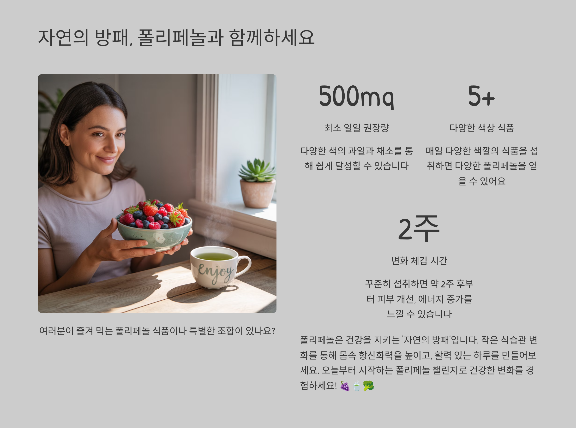 저는 식단에 폴리페놀을 의도적으로 넣기 시작하면서 피부 톤이 맑아지고 피로감이 줄었어요.
