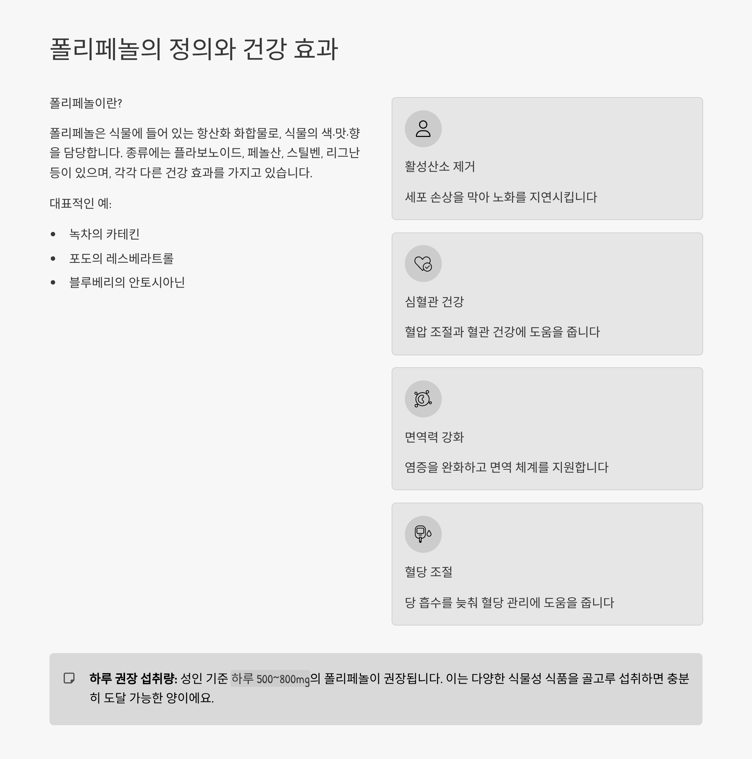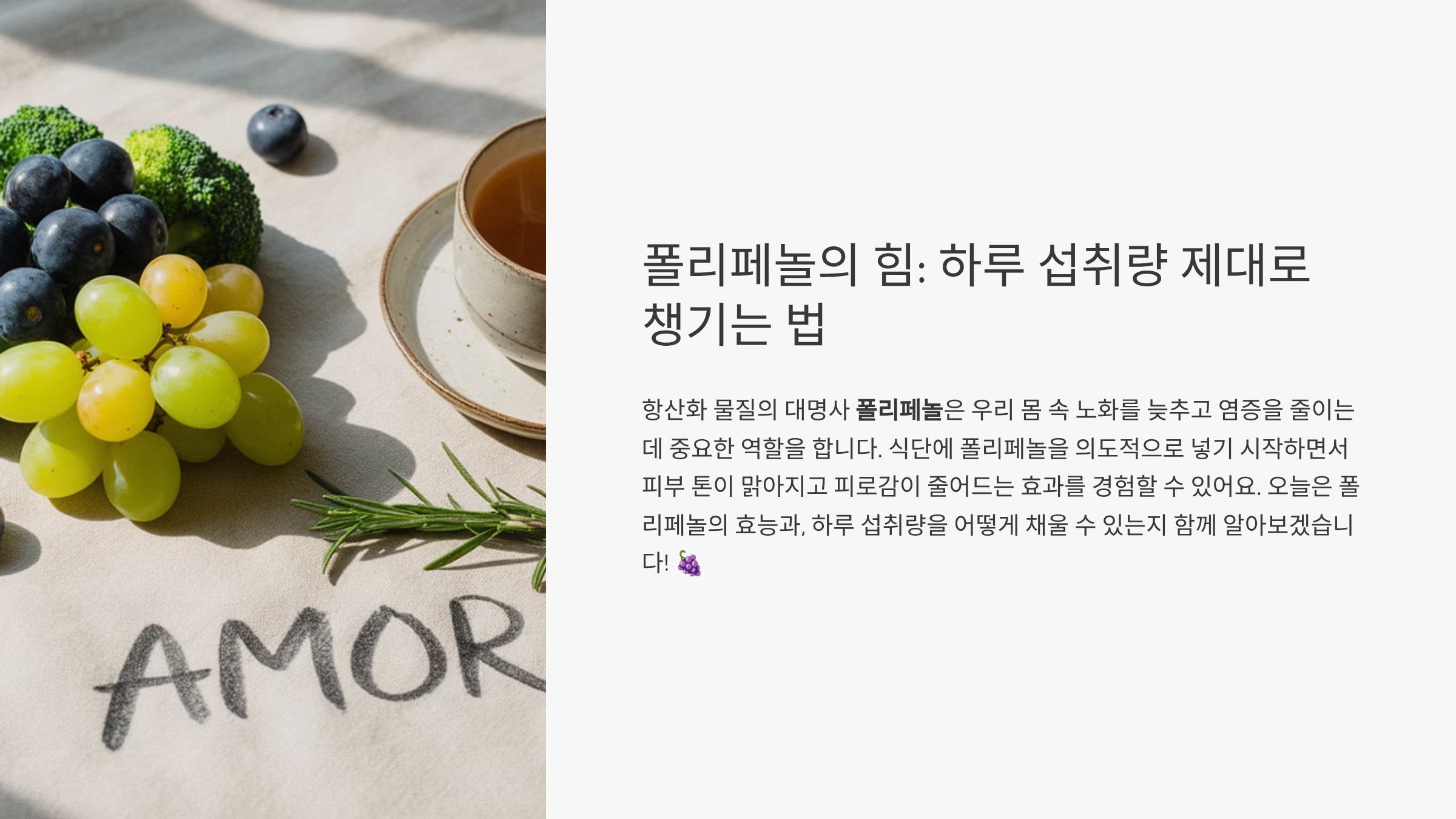 오늘은 폴리페놀의 효능과, 하루 섭취량을 어떻게 채울 수 있는지 알려드릴게요! 🍇