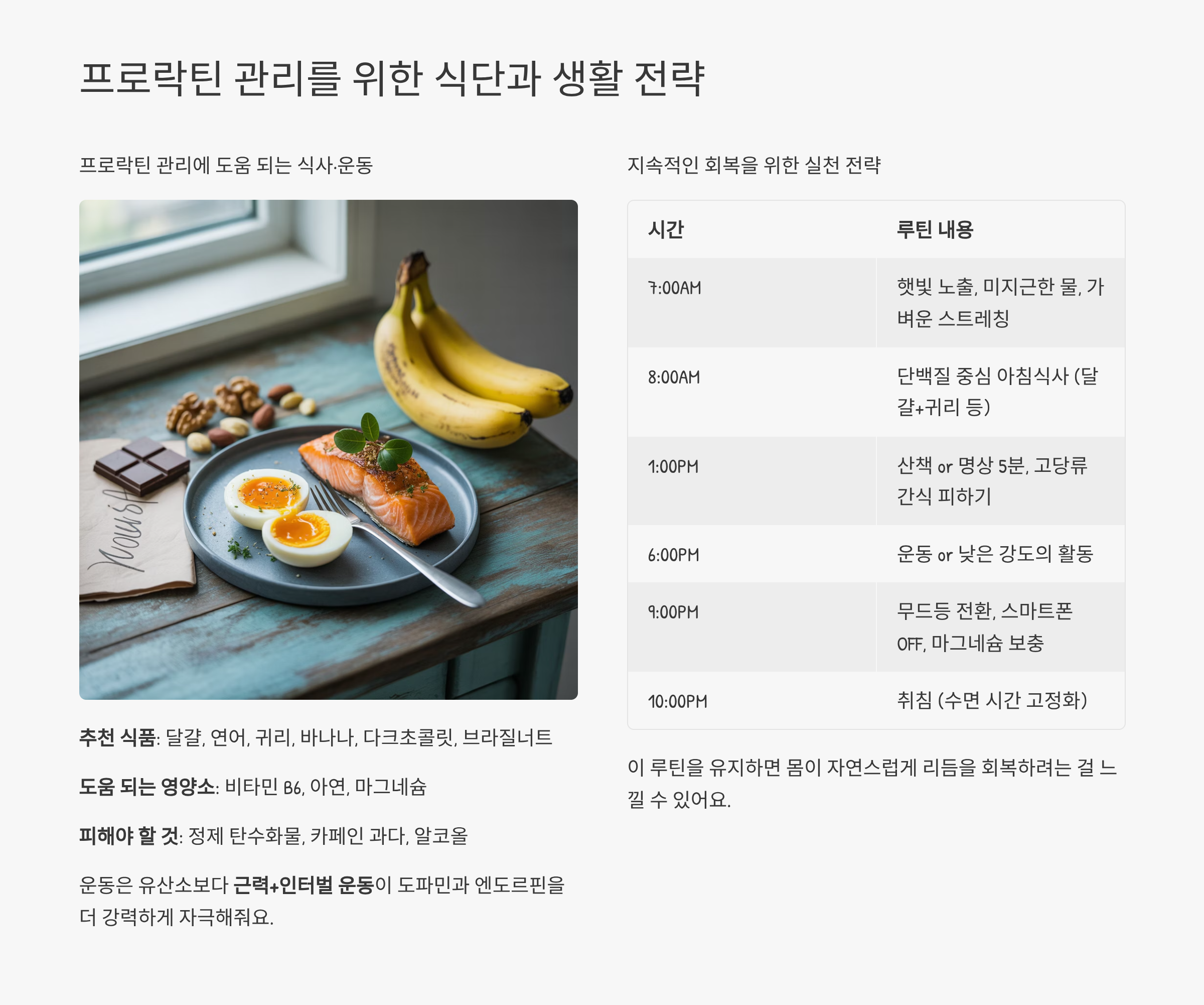 결국 혈액검사에서 프로락틴 수치가 기준치를 넘는 걸 발견했고, 루틴을 바꾼 뒤 컨디션이 안정됐어요!