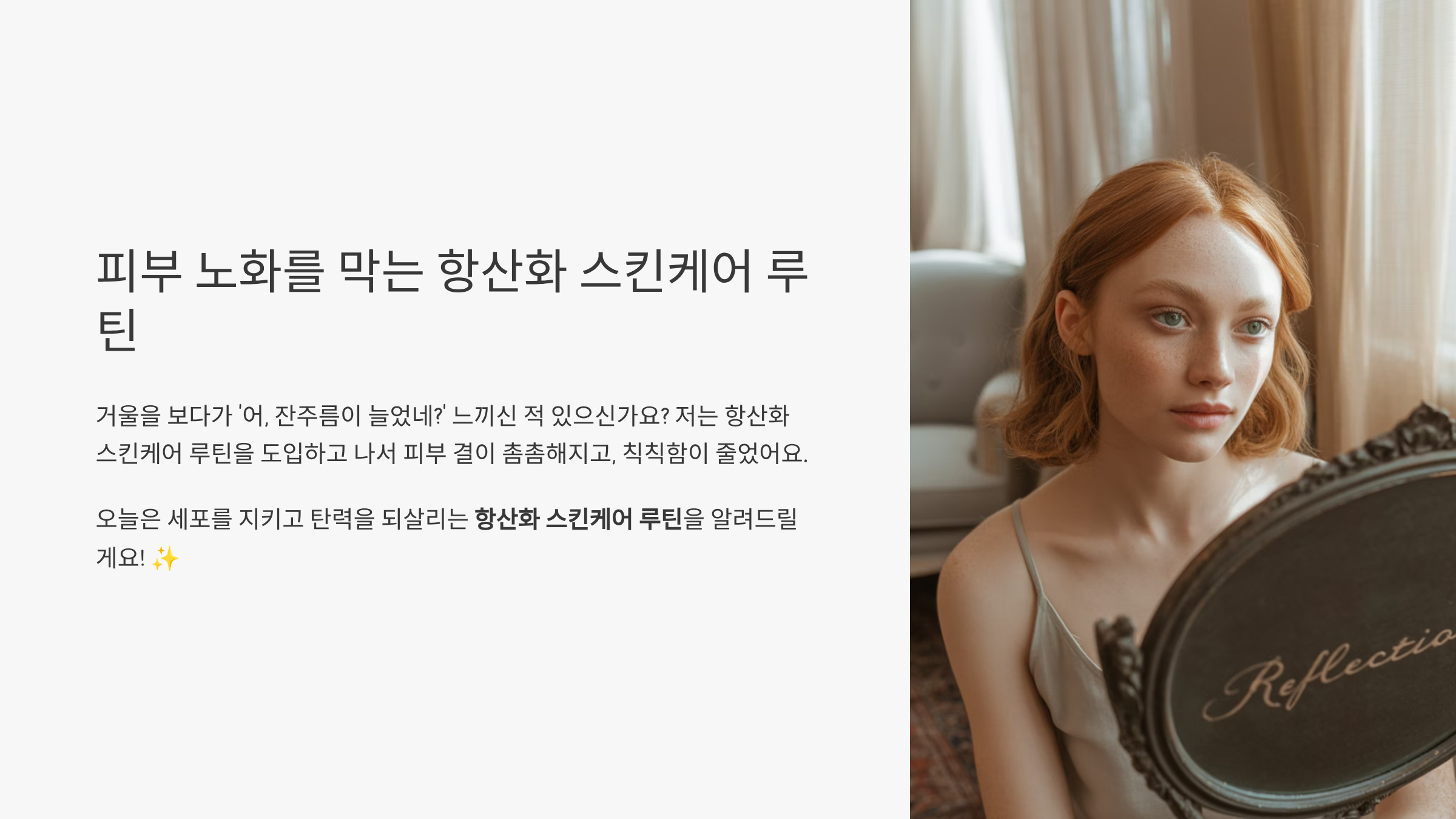 저는 항산화 스킨케어 루틴을 도입하고 나서 피부 결이 촘촘해지고, 칙칙함이 줄었어요.