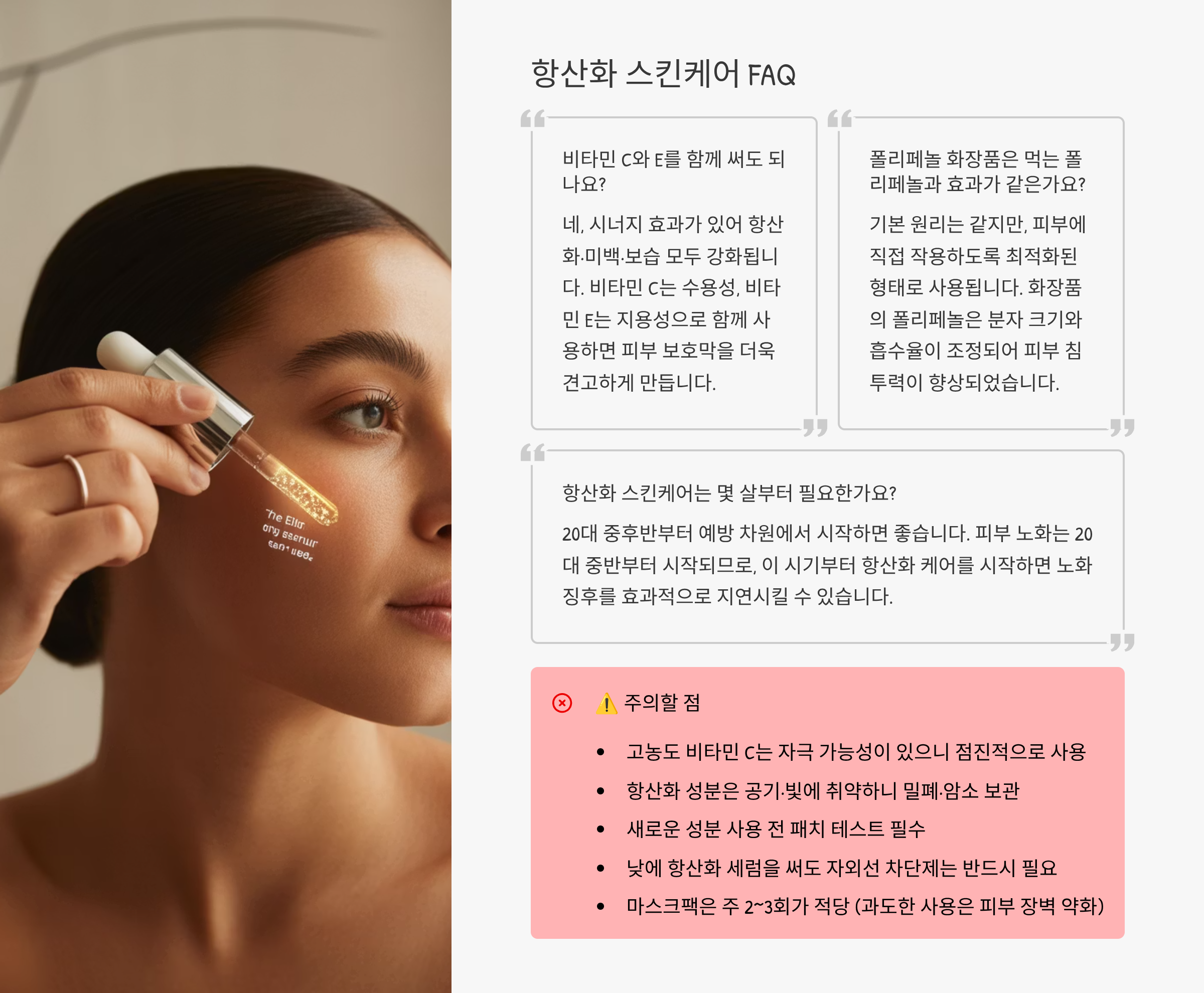 - 새로운 성분 사용 전 패치 테스트 필수