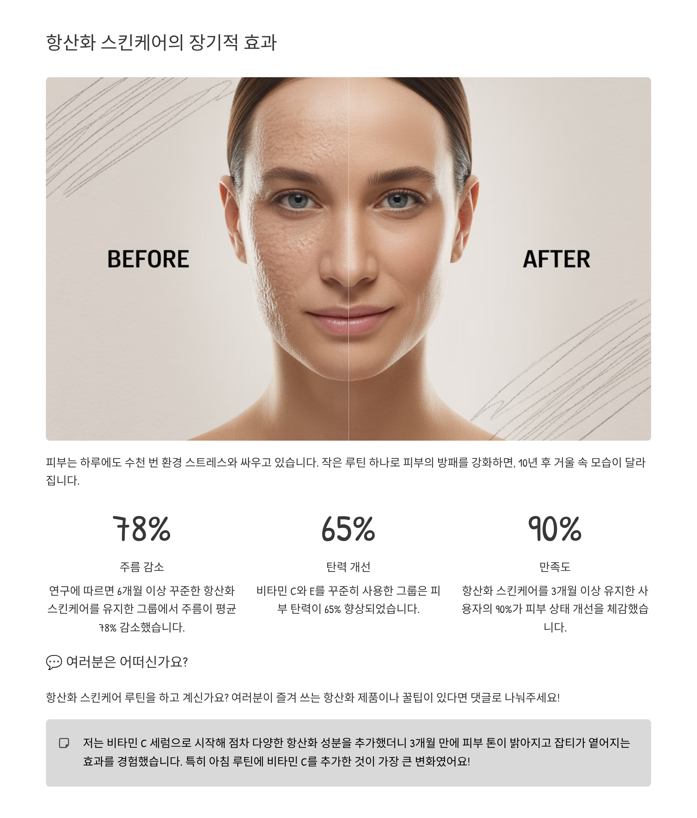 여러분이 즐겨 쓰는 항산화 제품이나 꿀팁이 있다면 댓글로 나눠주세요!
