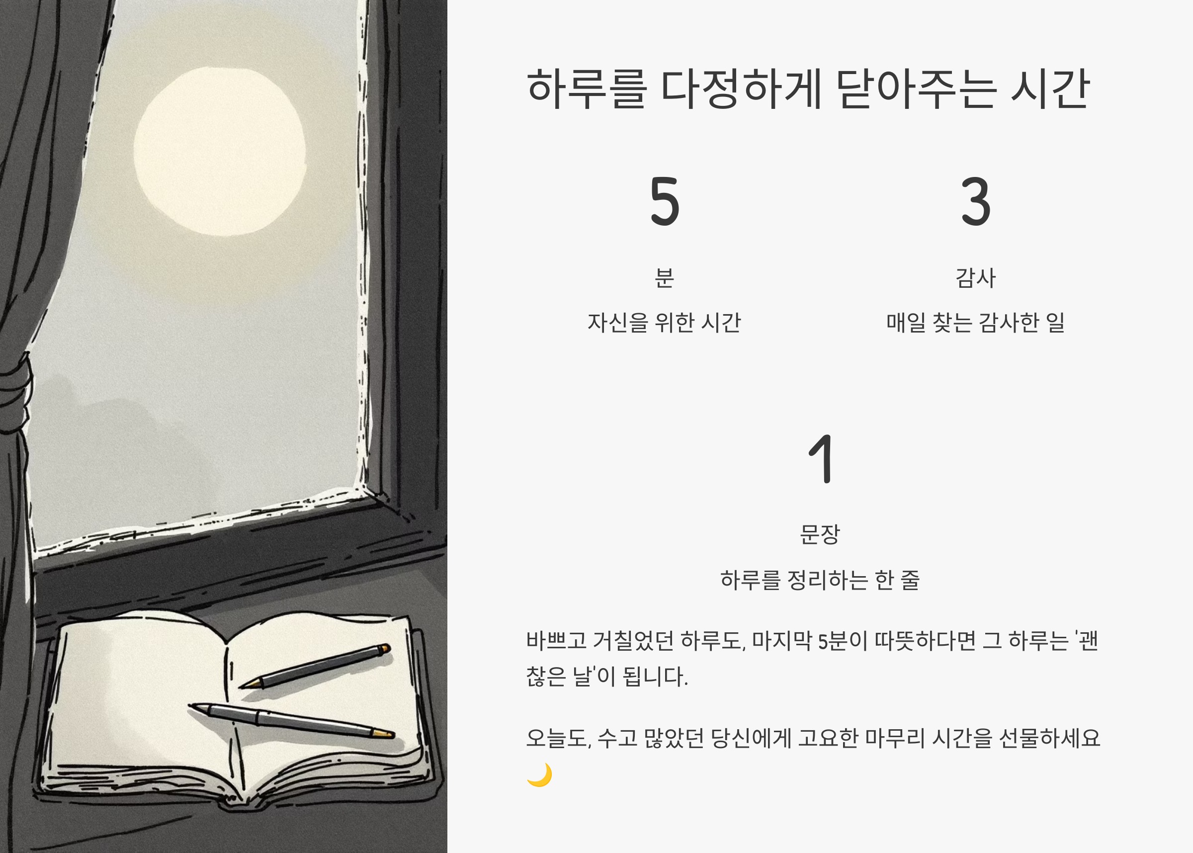 하루를 한 번 정리하고 내려놓는 루틴을 만들어보세요.