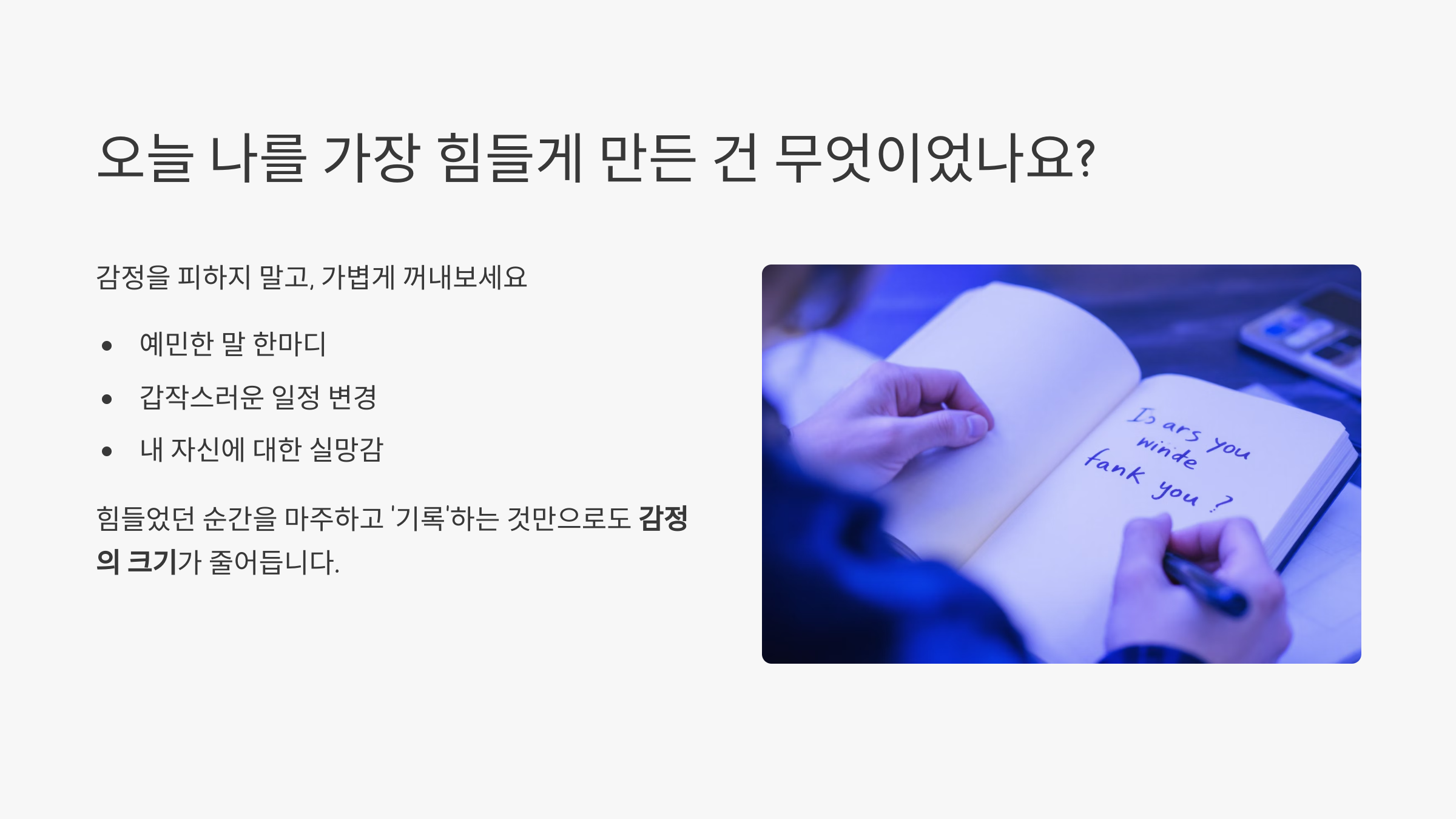 적으면 감정 정리가 훨씬 명확해지고 지속성도 높아집니다.
