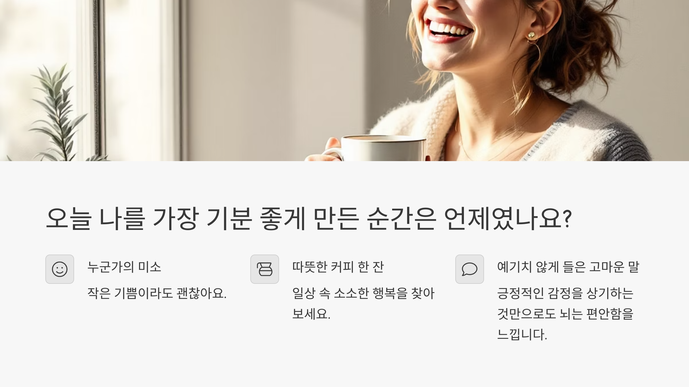 1. 오늘 나를 가장 기분 좋게 만든 순간은 언제였나요?