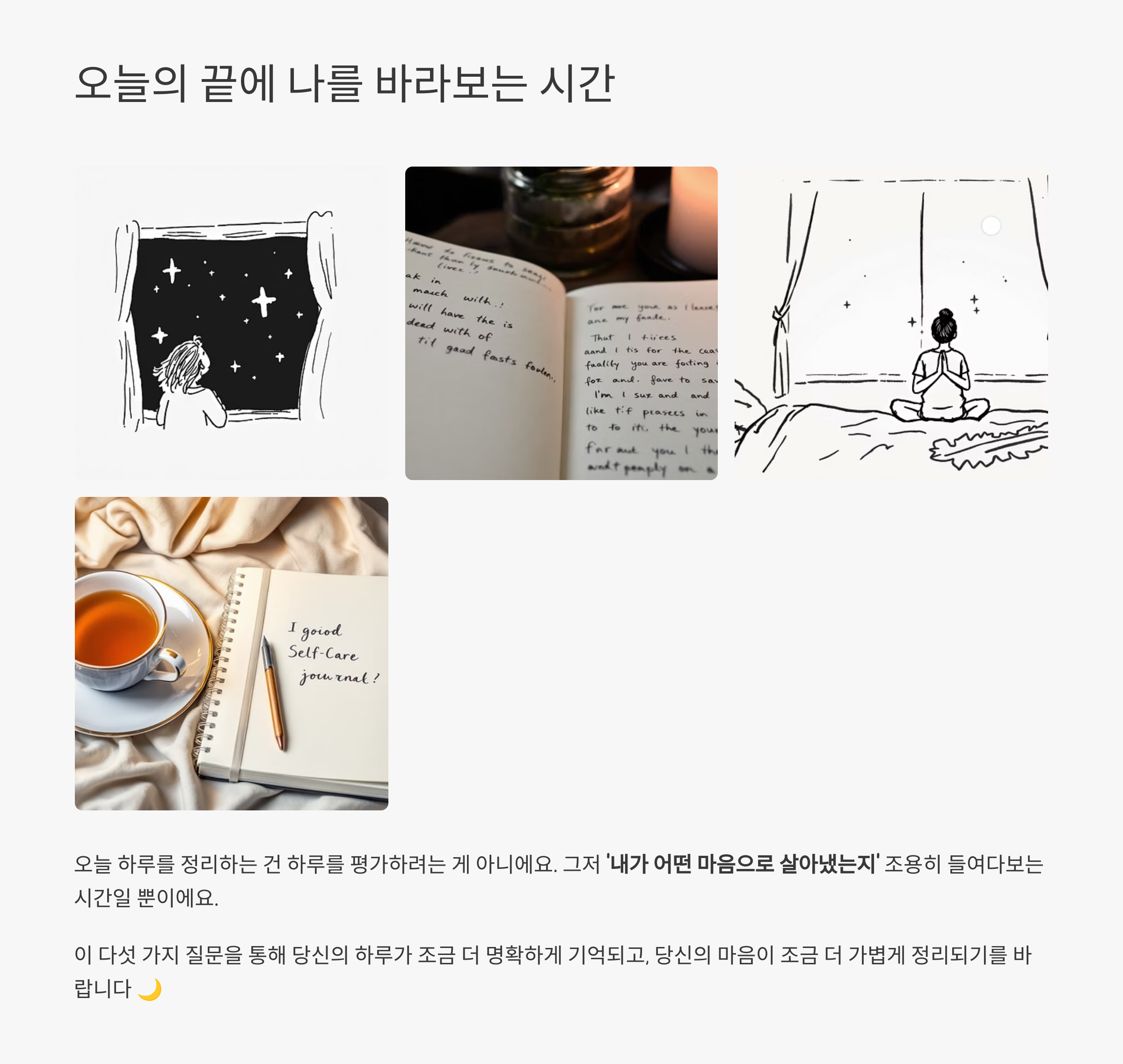 - 처음엔 어색해도, 꾸준히 하면 자신을 더 정확히 이해하게 됩니다.