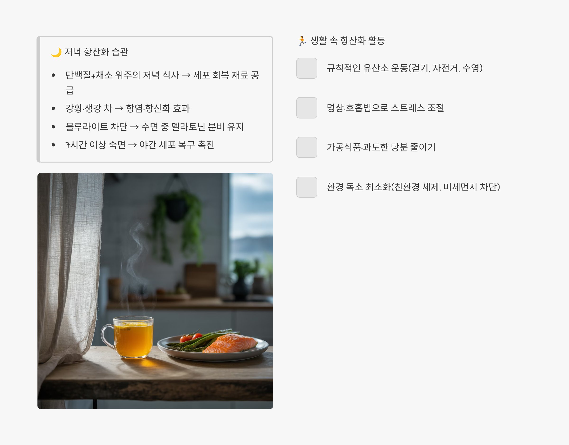 하루 항산화 루틴: 아침부터 밤까지 세포를 지키는 습관