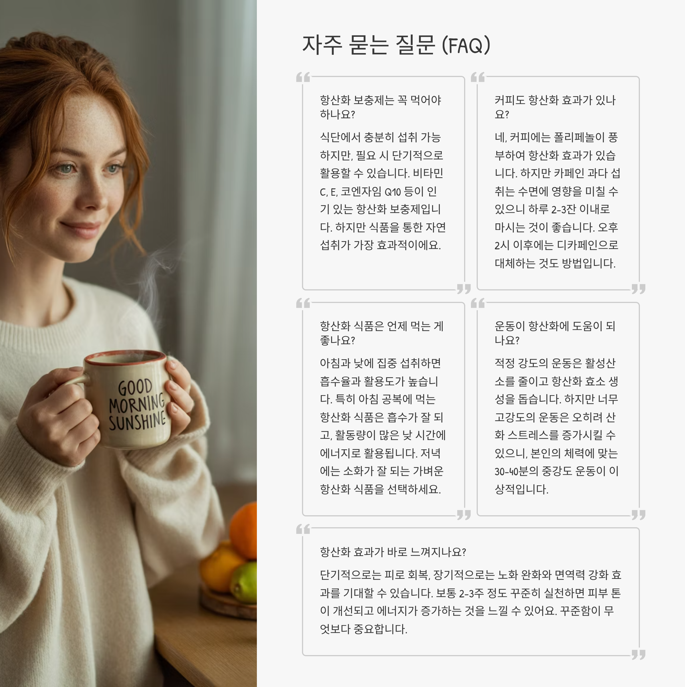 저는 하루 루틴에 항산화 습관을 더하면서 피부 탄력과 에너지가 확 달라졌어요.