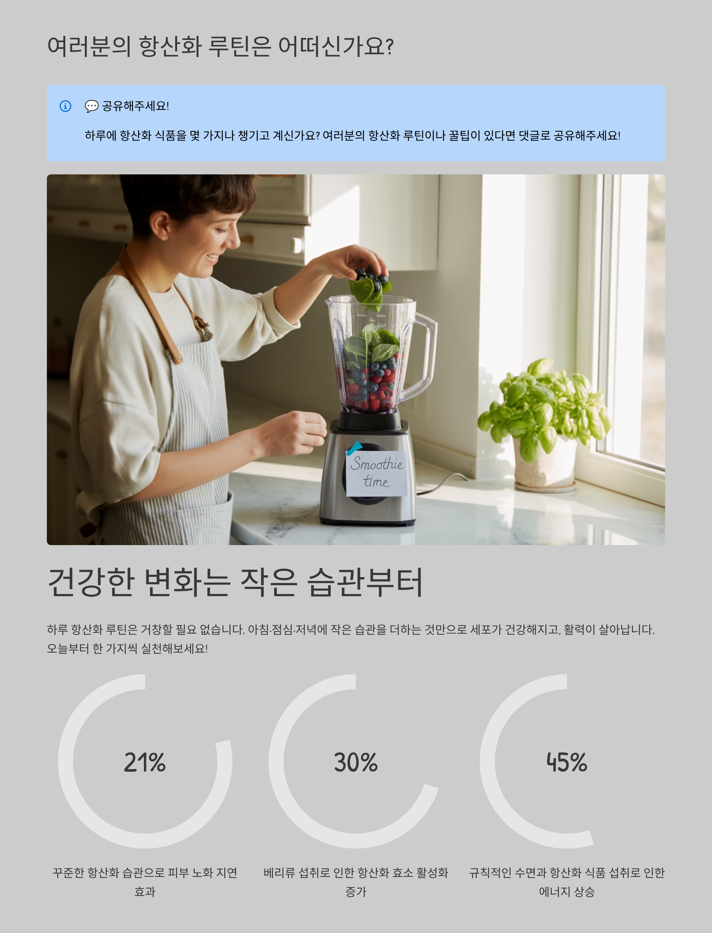 여러분의 항산화 루틴이나 꿀팁이 있다면 댓글로 공유해주세요!