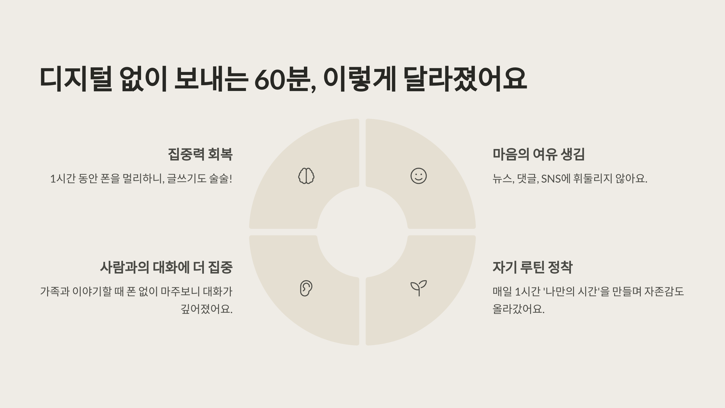하루 1시간, 폰을 ‘물리적으로 멀리’하는 게 핵심이에요.