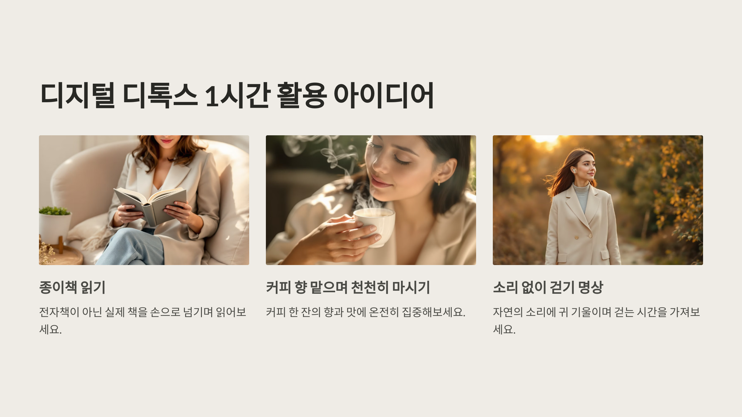 댓글로 여러분의 디지털 디톡스 시간 활용법 공유해보세요 😊