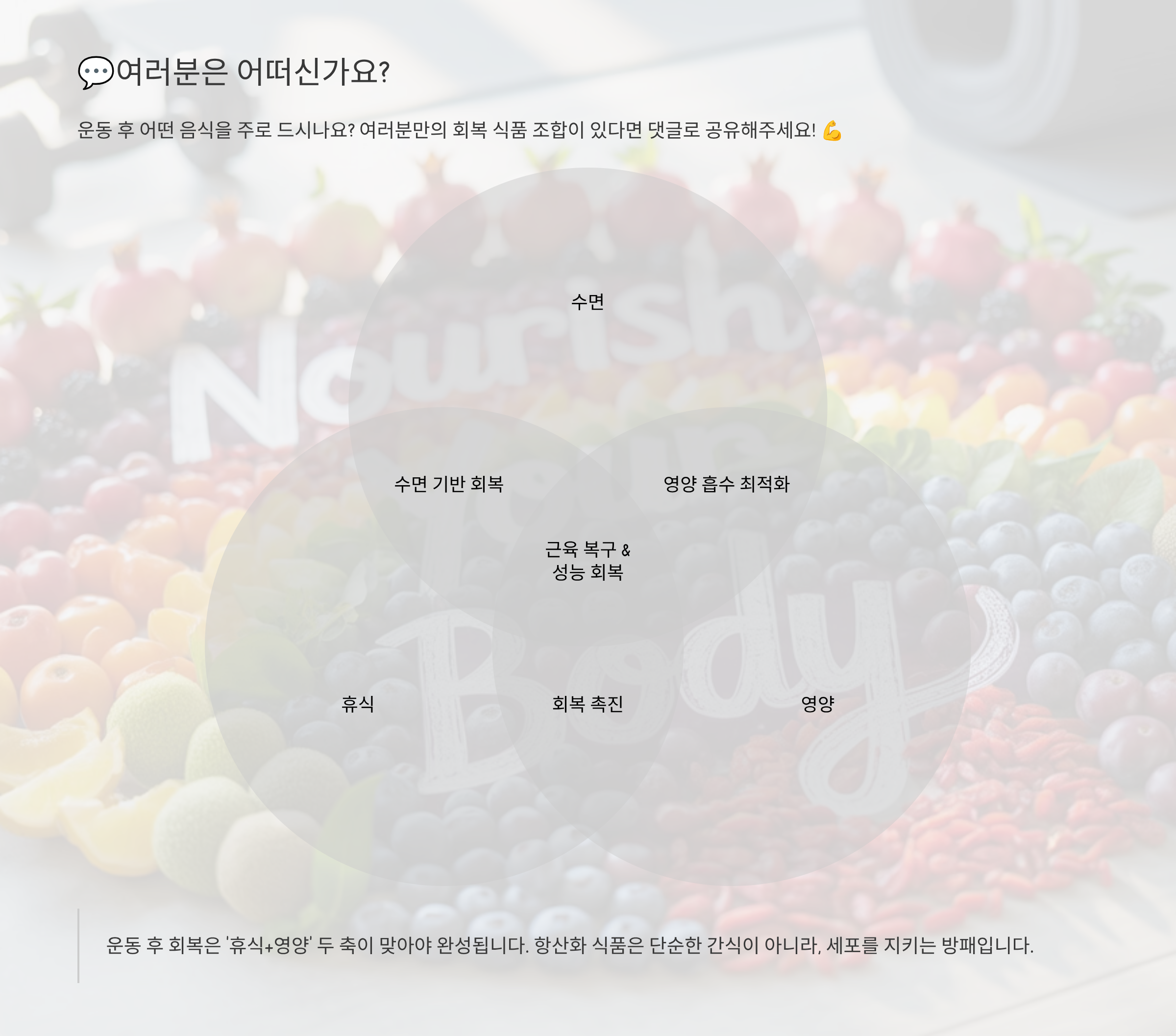 여러분만의 회복 식품 조합이 있다면 댓글로 공유해주세요! 💪
