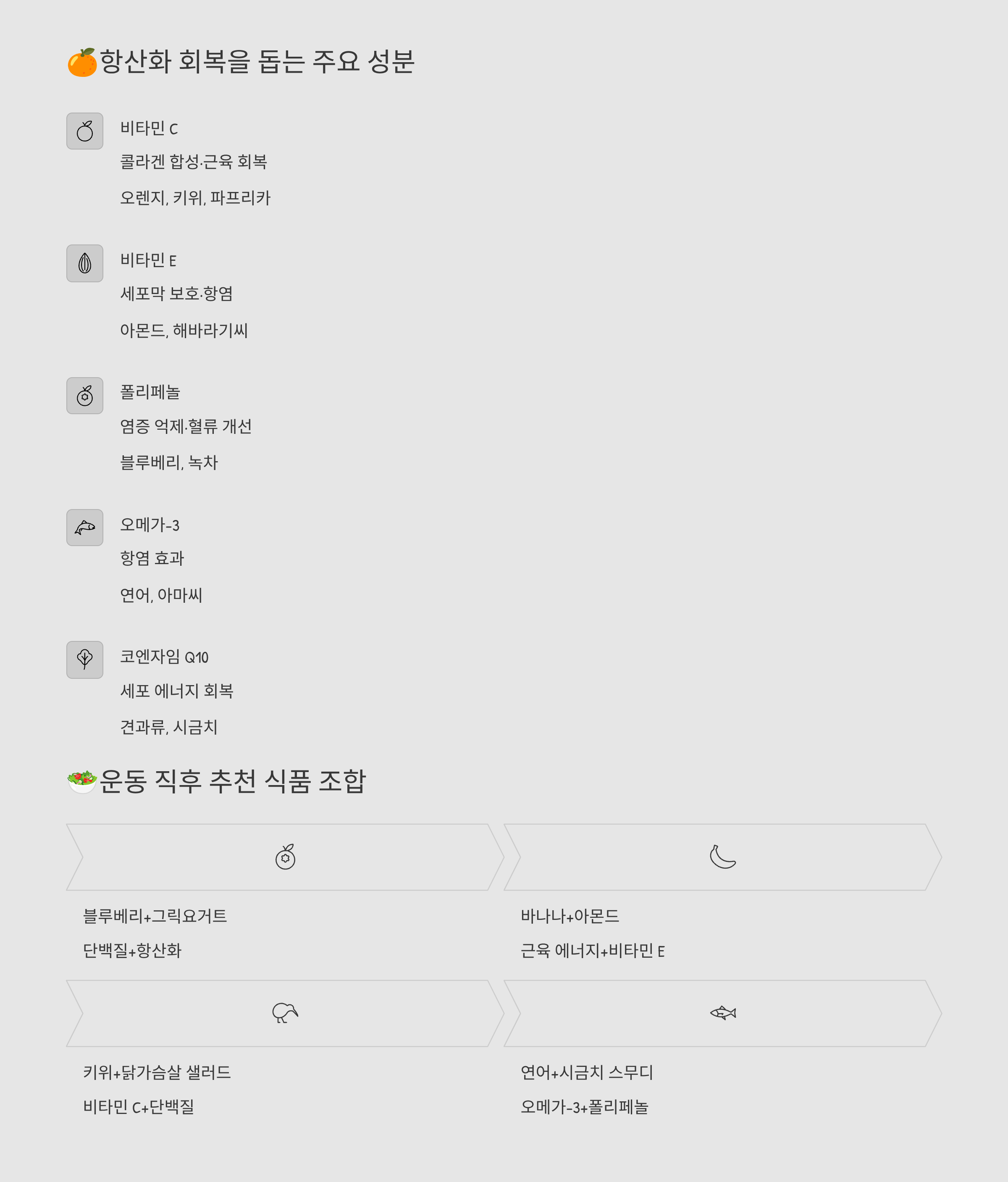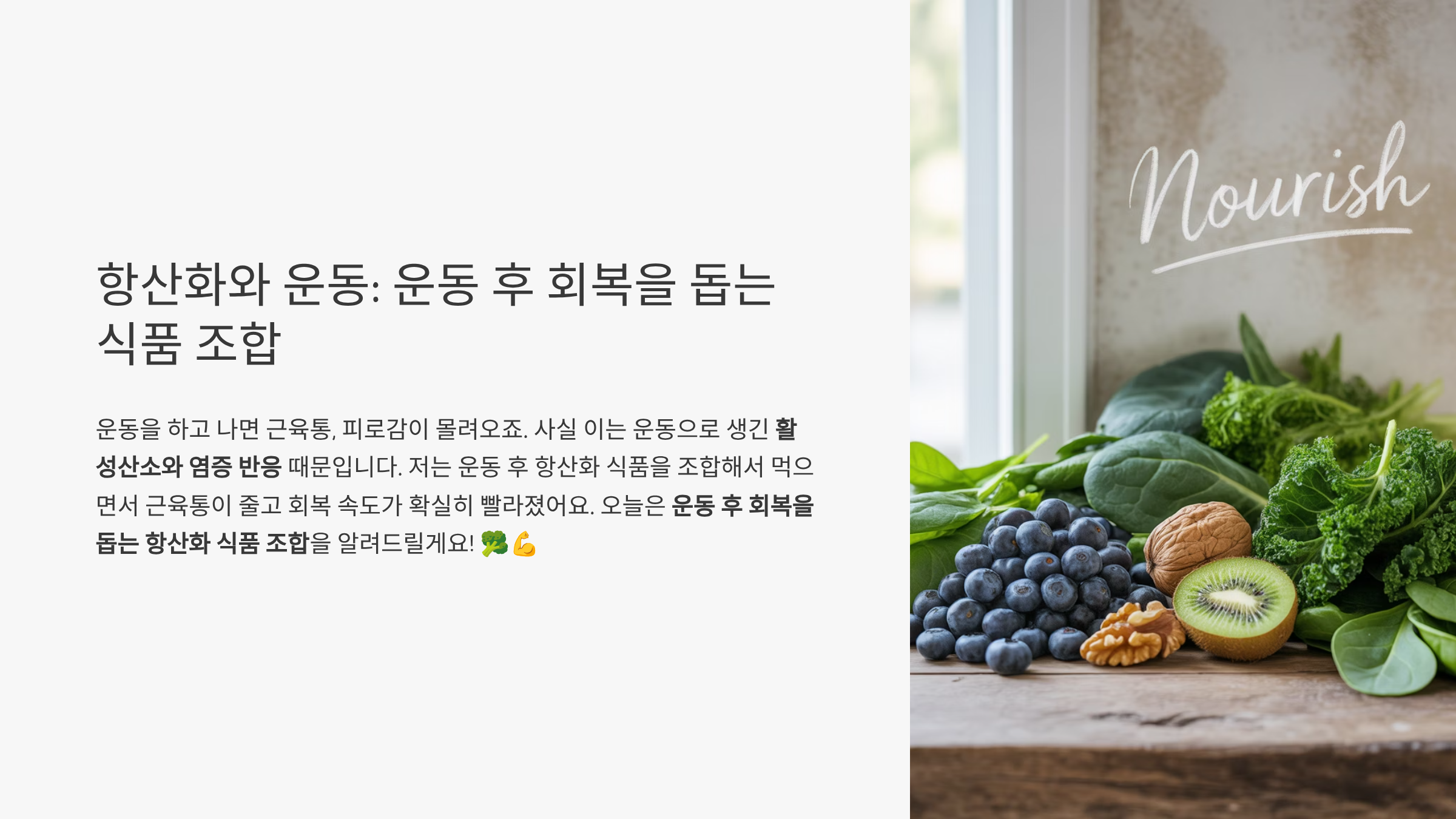 오늘은 운동 후 회복을 돕는 항산화 식품 조합을 알려드릴게요! 🥦💪